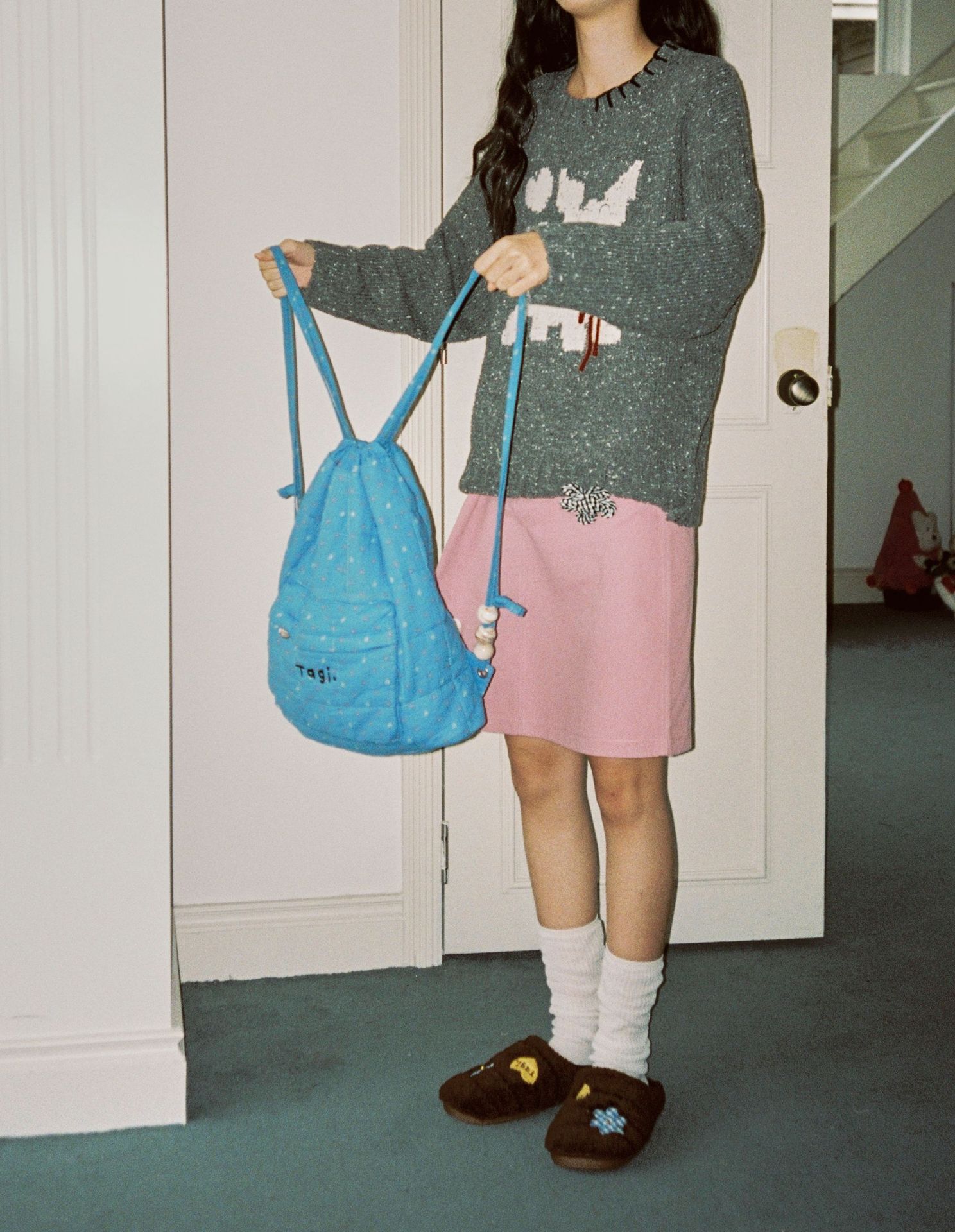 Tagi.Tanghulu《i》珍珠亚克力串珠可爱抽绳帆布包大容量双肩包