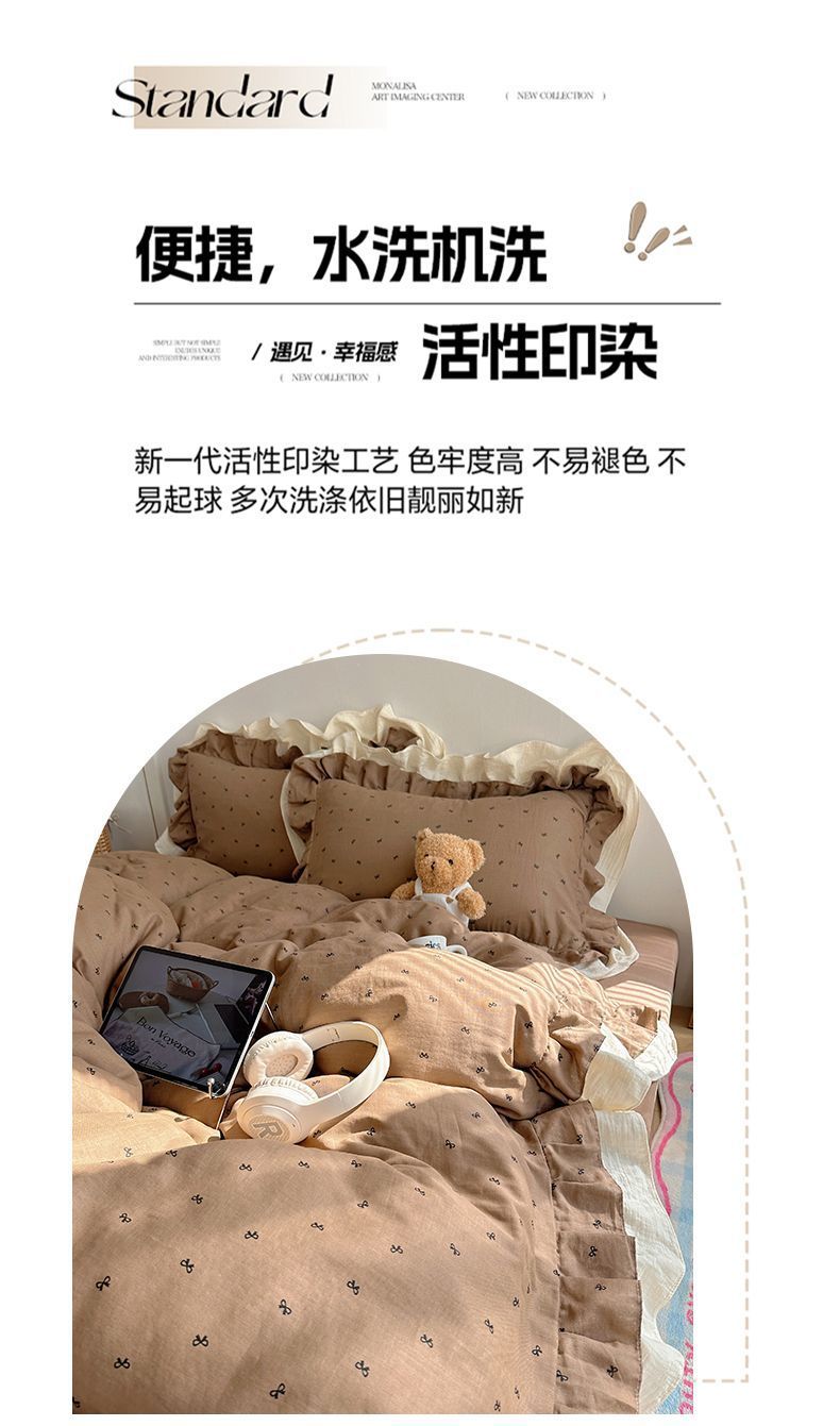 HIINII 二重糸ウォッシュコットンエッジベッド4点セット ガーリーハートシーツ 掛け布団カバー 寮用ボックスシーツ 3点セット