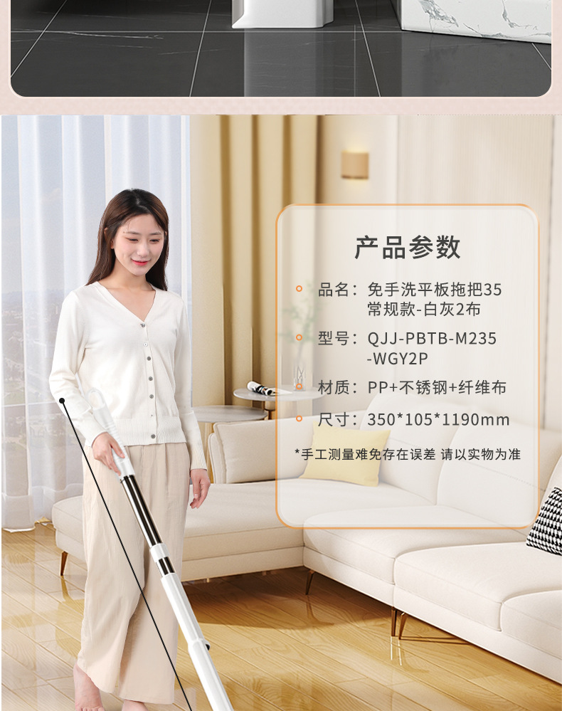 Qingjijia フラットモップ フロアモップ 家庭用 新型 手洗い不要モップ ワンモップ 2枚の布で乾湿両用