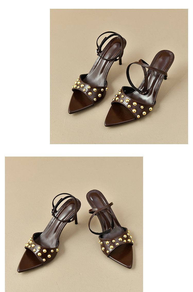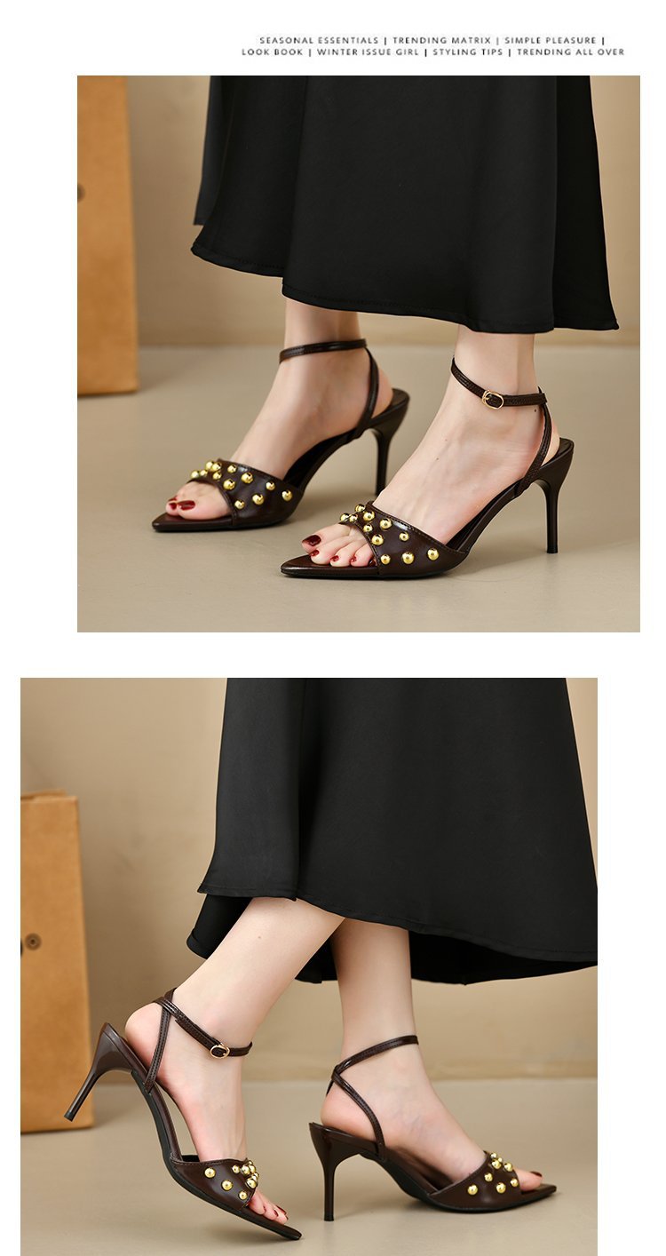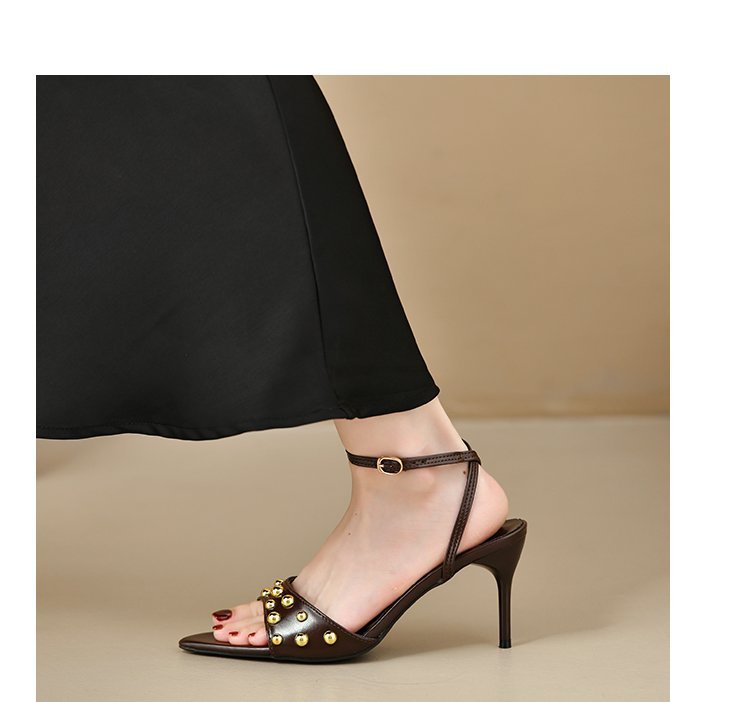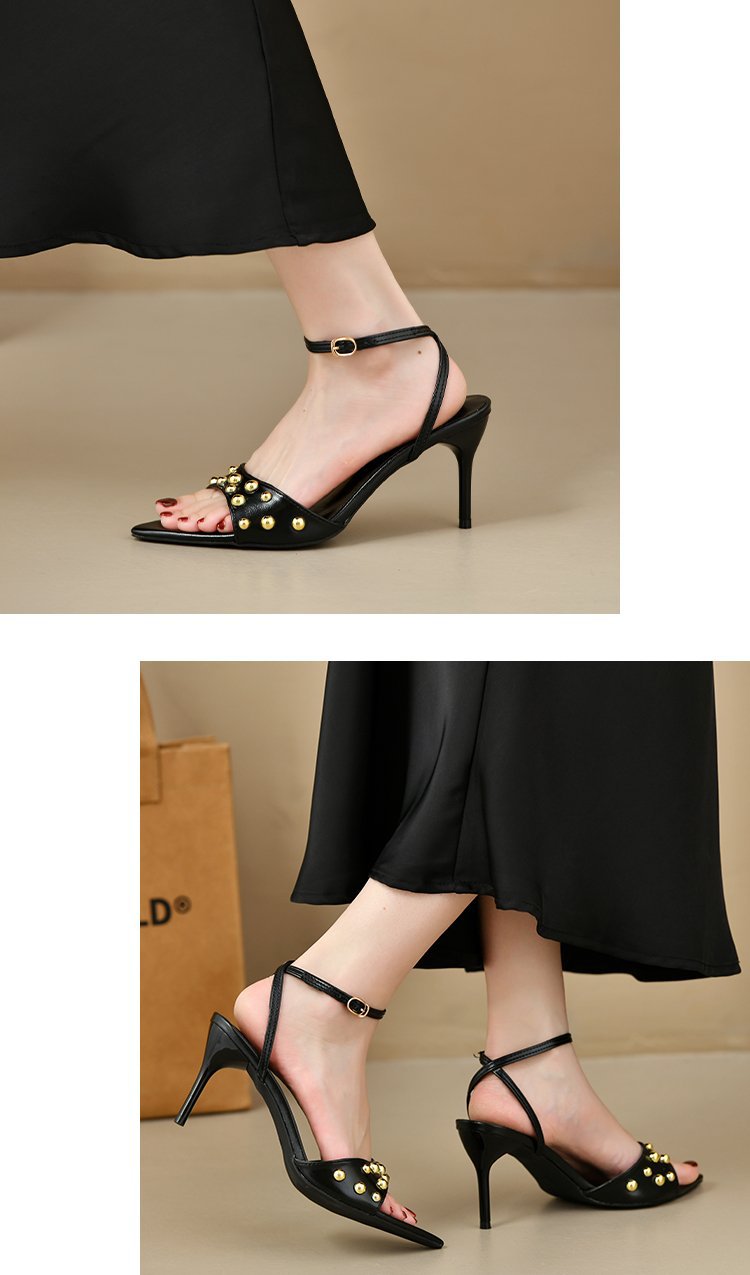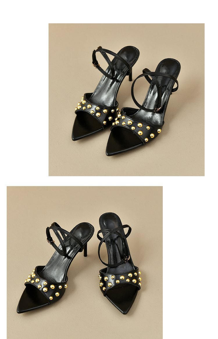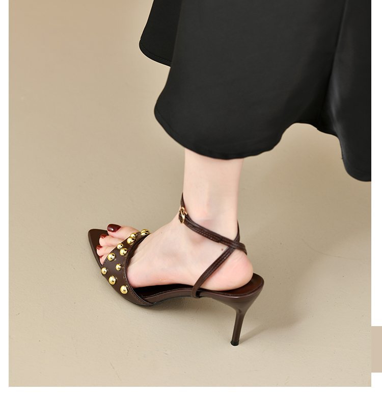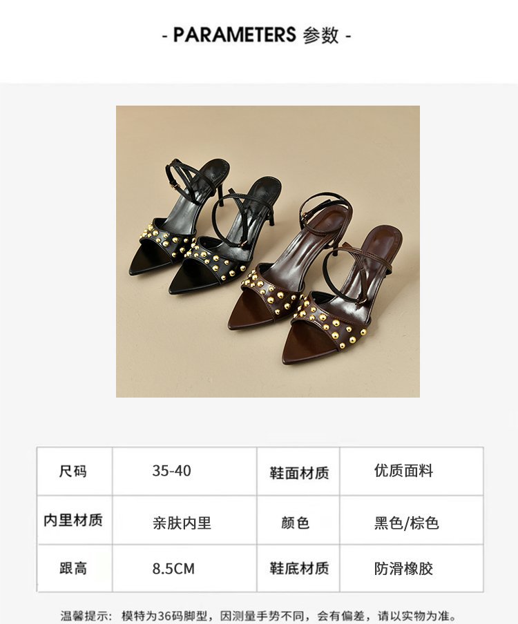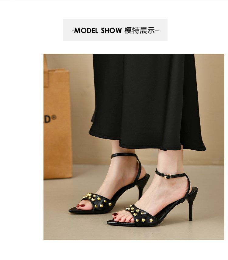女性の靴 2025 新しい外国貿易大きいサイズリベットスリッパ女性のアウターウェアラウンドトゥオープントゥ女性サンダルハイヒール