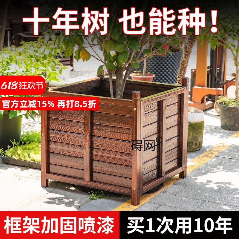 防錆木製フラワーボックス屋外中庭正方形植栽ボックス特大植木鉢屋外フラワーチャンネル特大植樹ボックスポット
