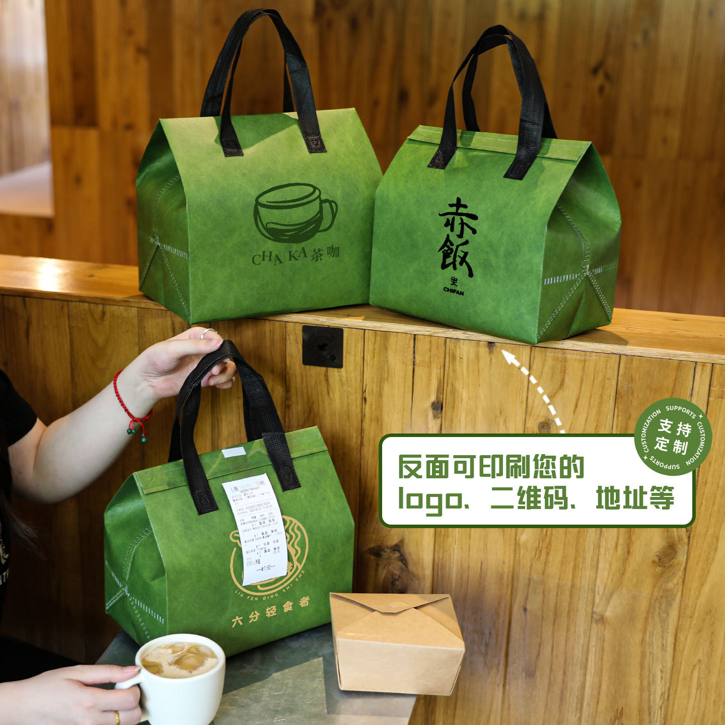 使い捨て業務用アルミ箔保温バッグ デュポン紙風ネット流行テイクアウト不織布ハンドバッグ 厚手テイクアウト包装