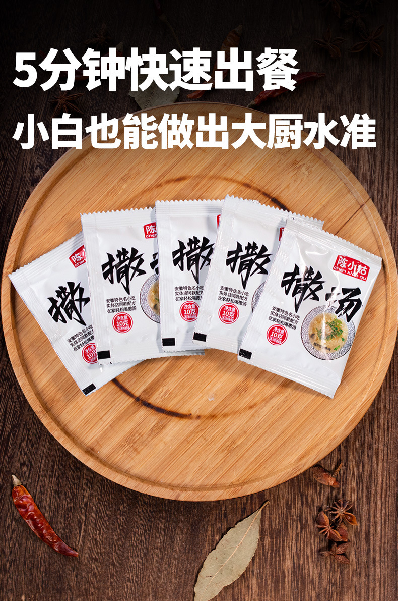 安徽省名物の即席スープ、辛味スープ、卵スープ、調味料、朝食店向けのスープ材料パックをワンピースで発送します。