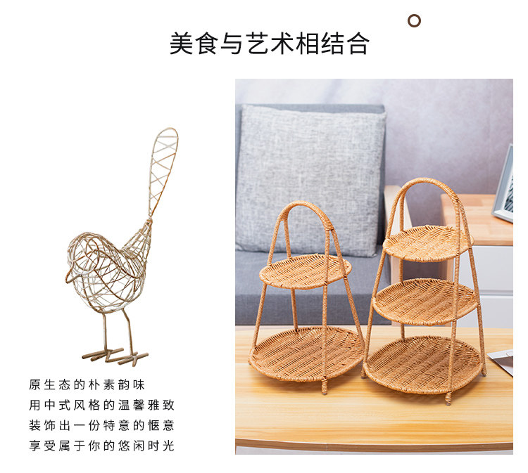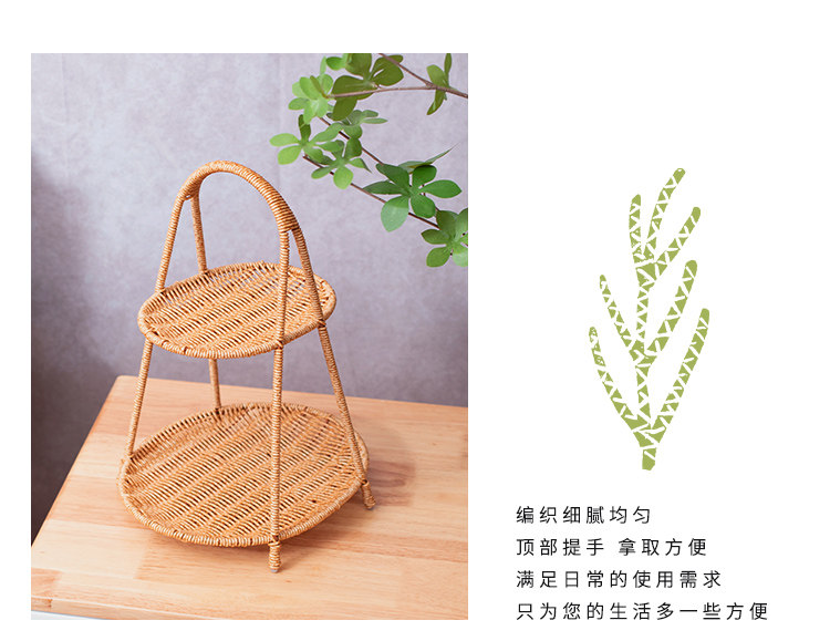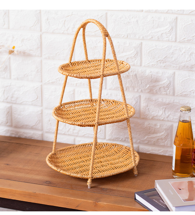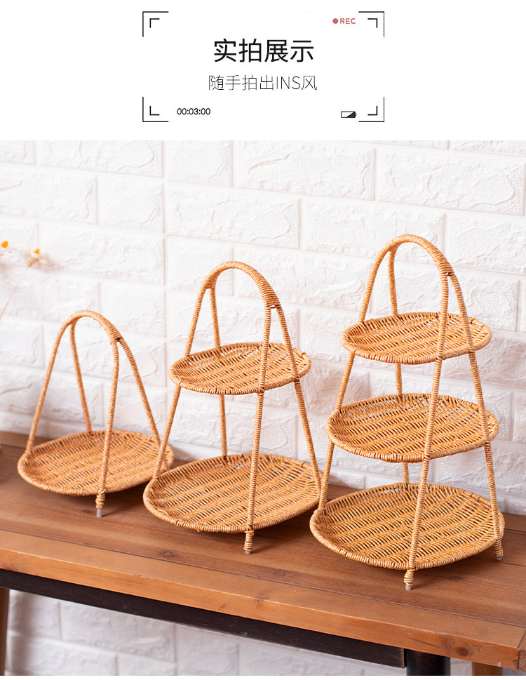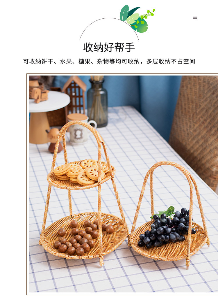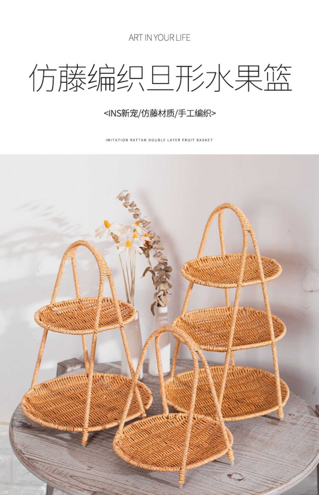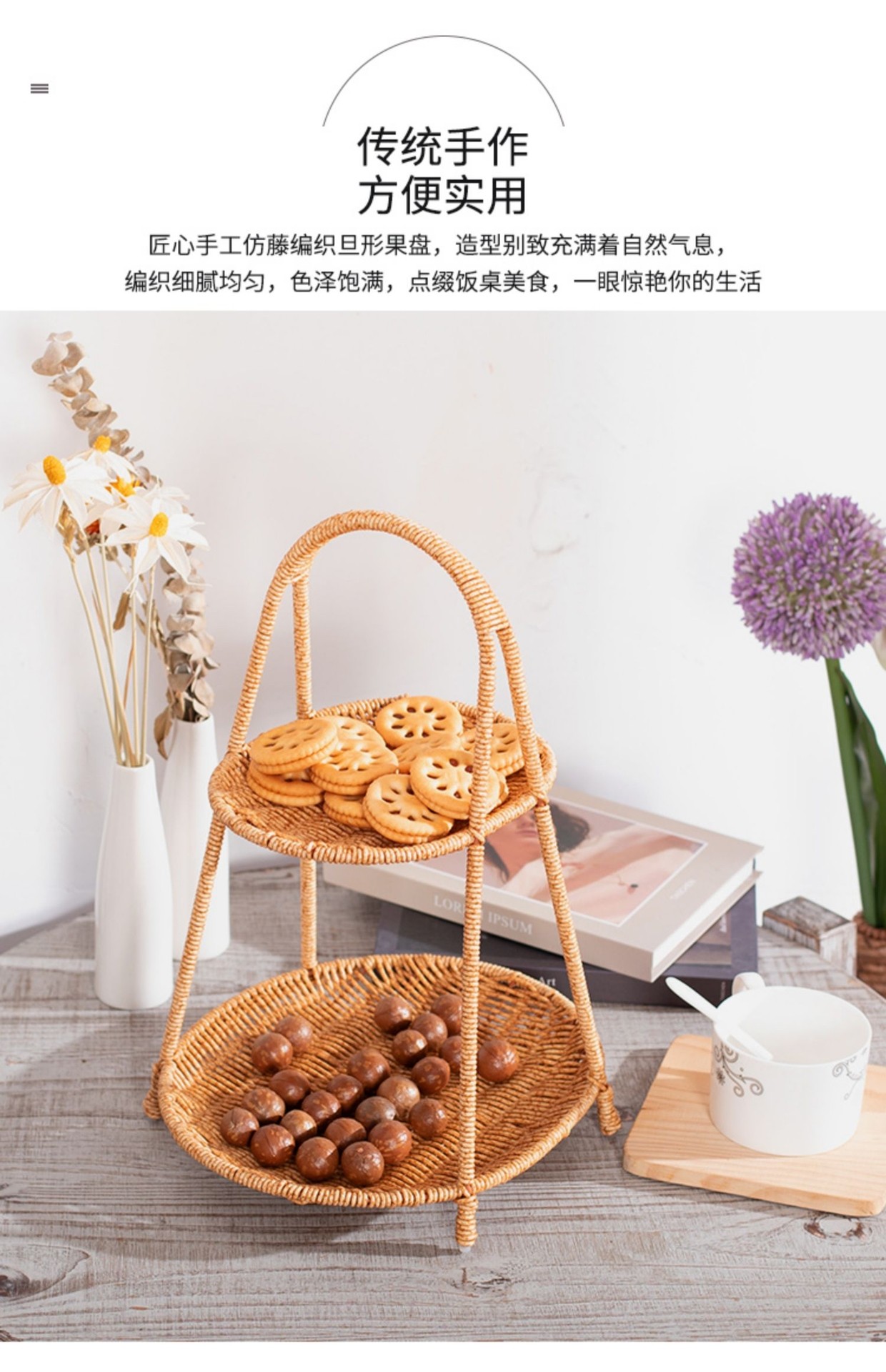 2または3層のクリエイティブフルーツバスケット、多層中国風ドライフルーツプレート、模造籐織り、家庭用スナック、キャンディー、アフタヌーンティートレイ