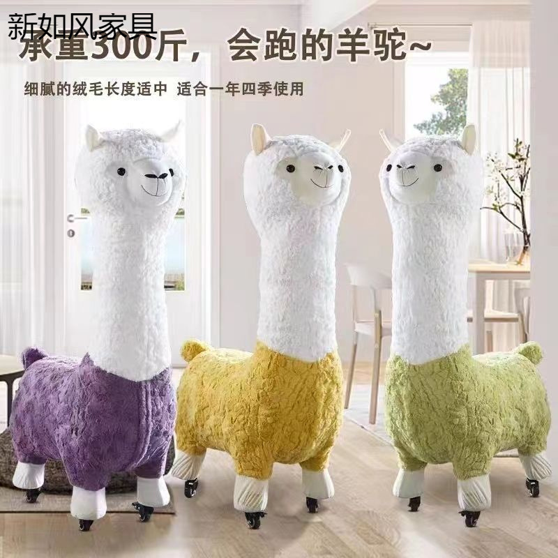 网红创意羊驼凳子客厅落地摆件毛绒动物座椅搬家礼物乔迁新居