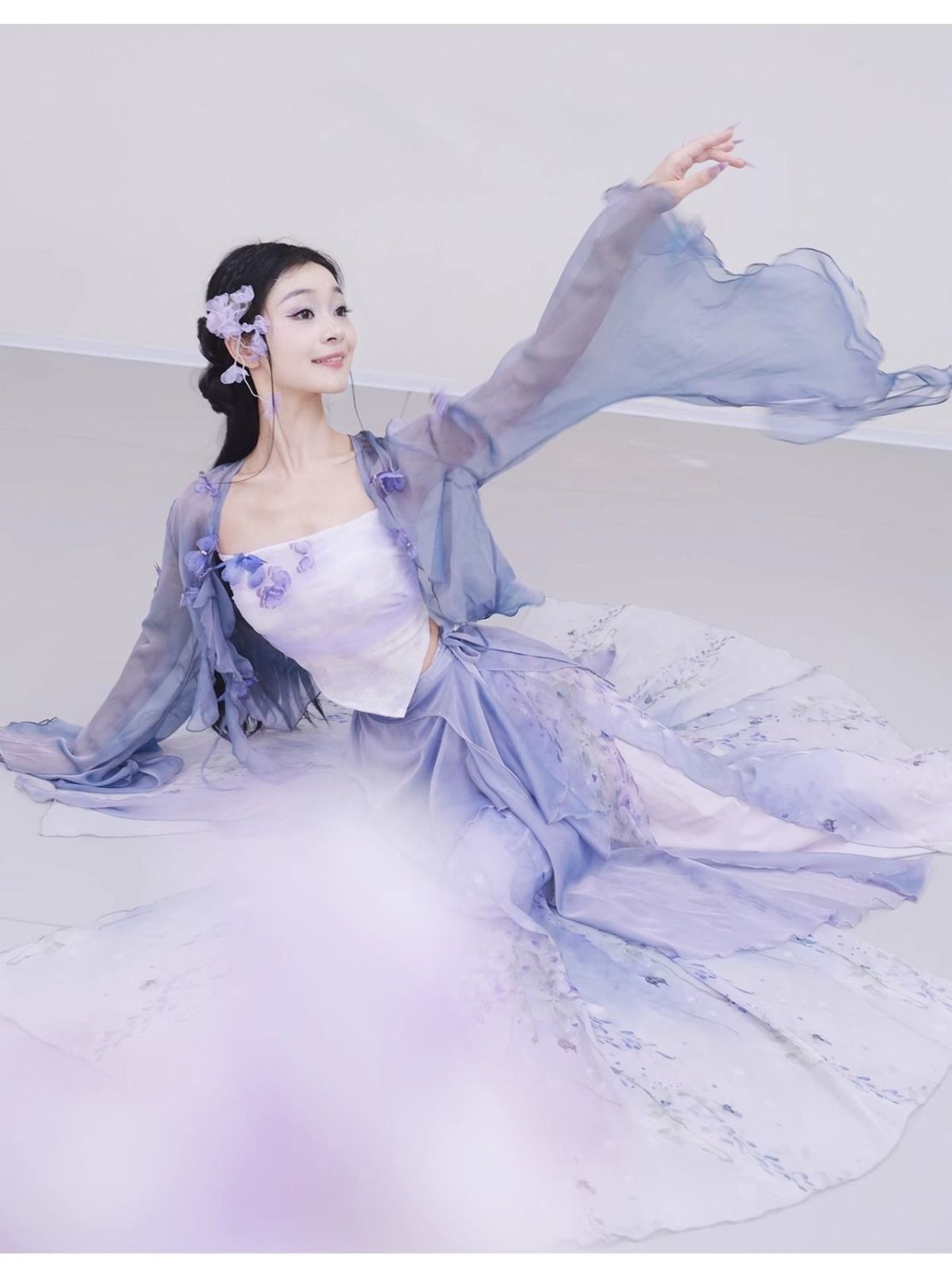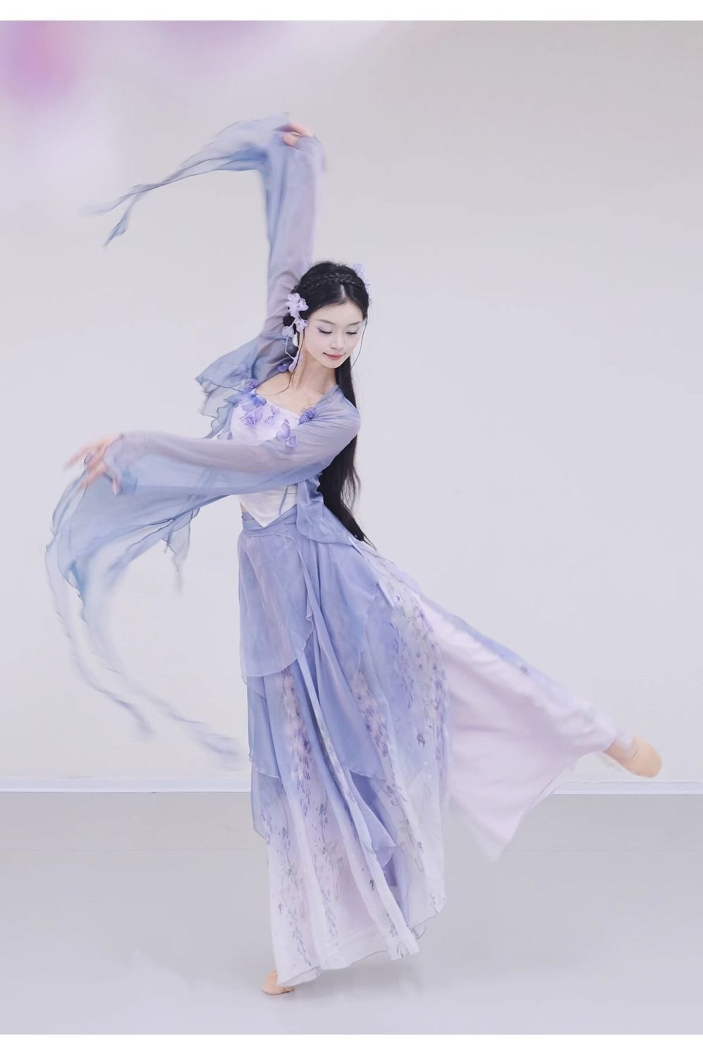 ♔2025新款古典舞渐变仙气飘逸纱衣喇叭袖外披晕染裤裙演出服练功