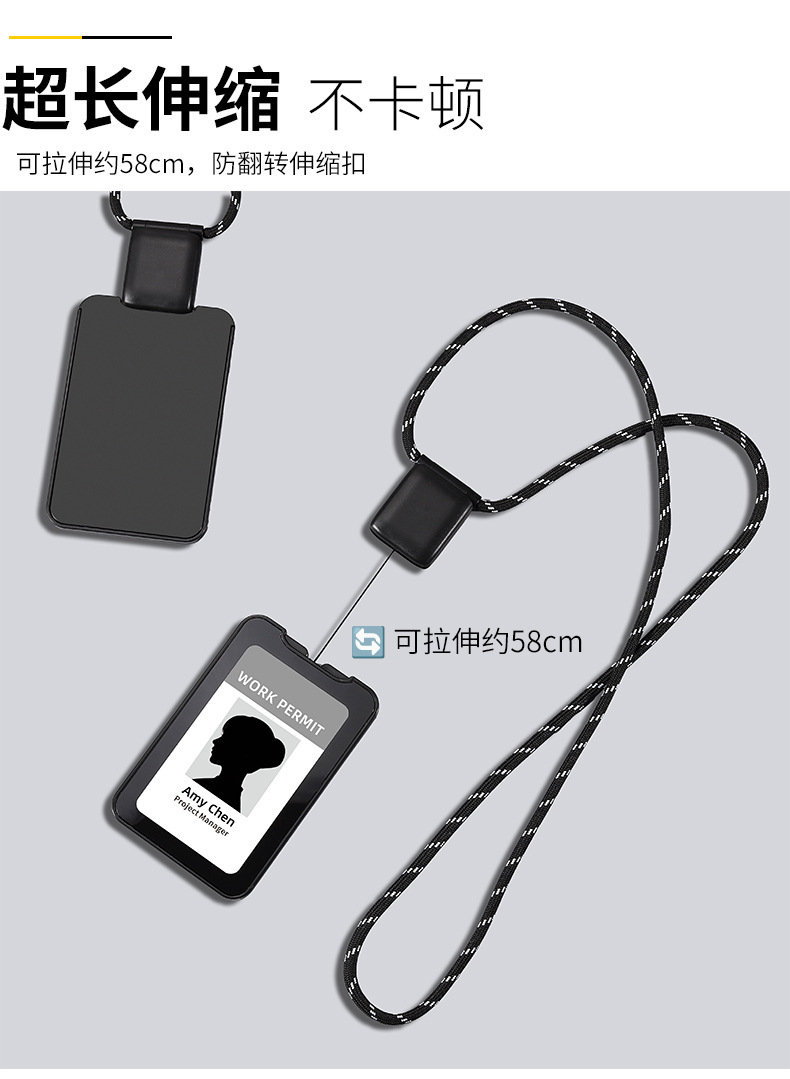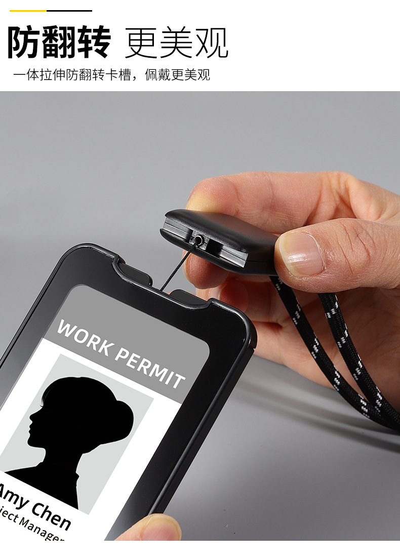 イージーピックル高級勤務証明書カードホルダー、バッジ伸縮バックル、ストラップ、ハードシェルカードホルダー、インカードホルダー