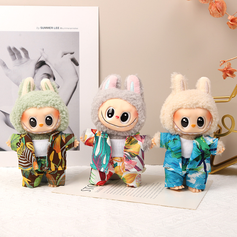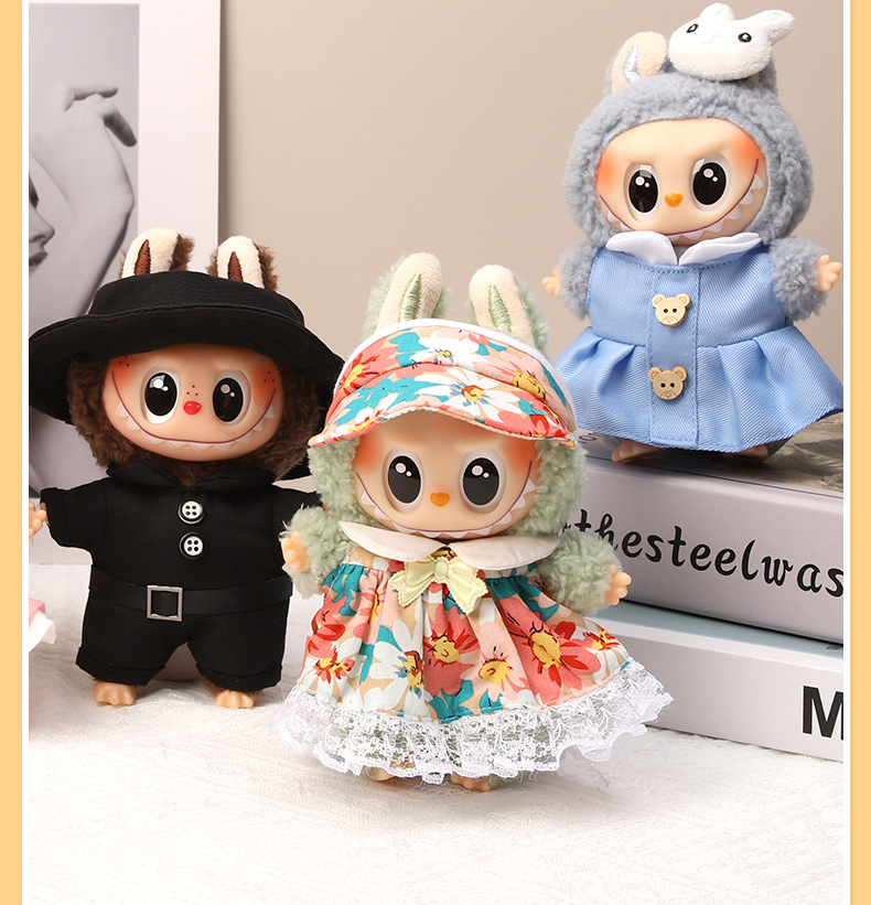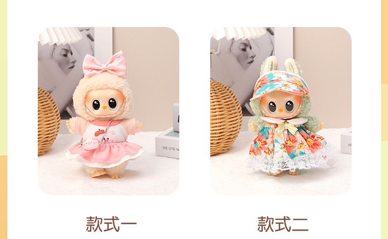 衣類のみ 17cm labubu ペンダント人形人形衣類アクセサリーフラワースイートプリンセスドレスサンハット