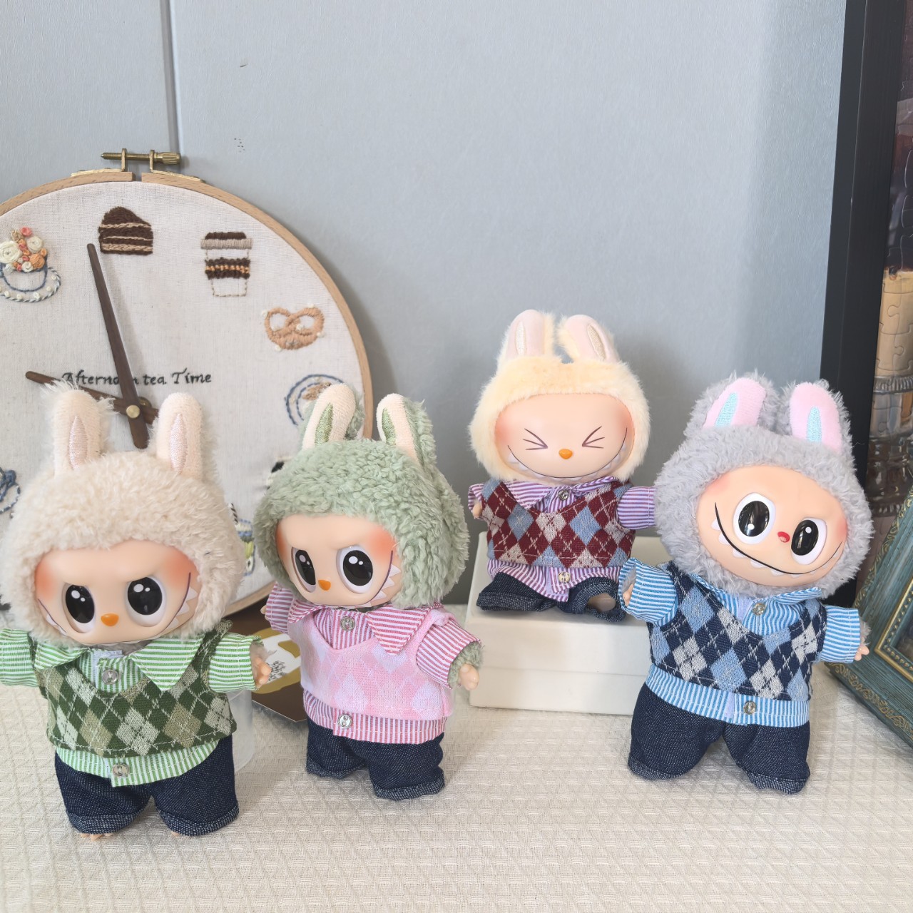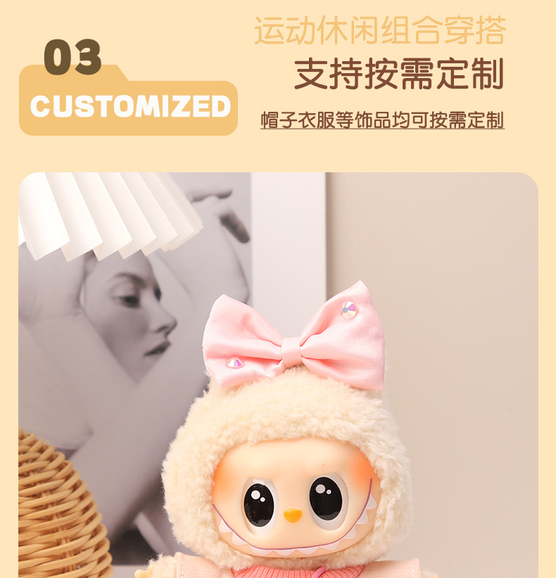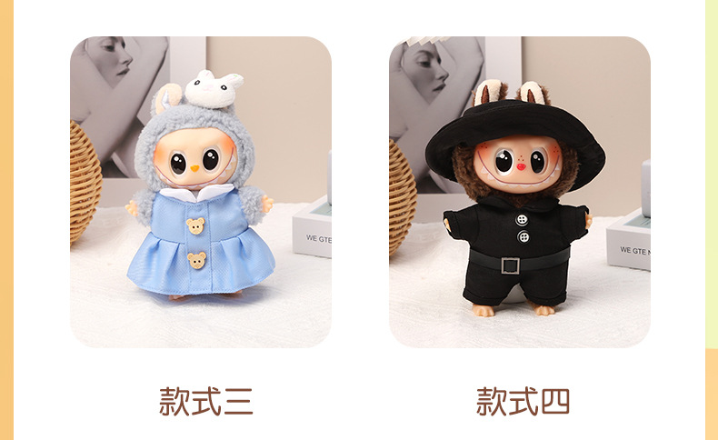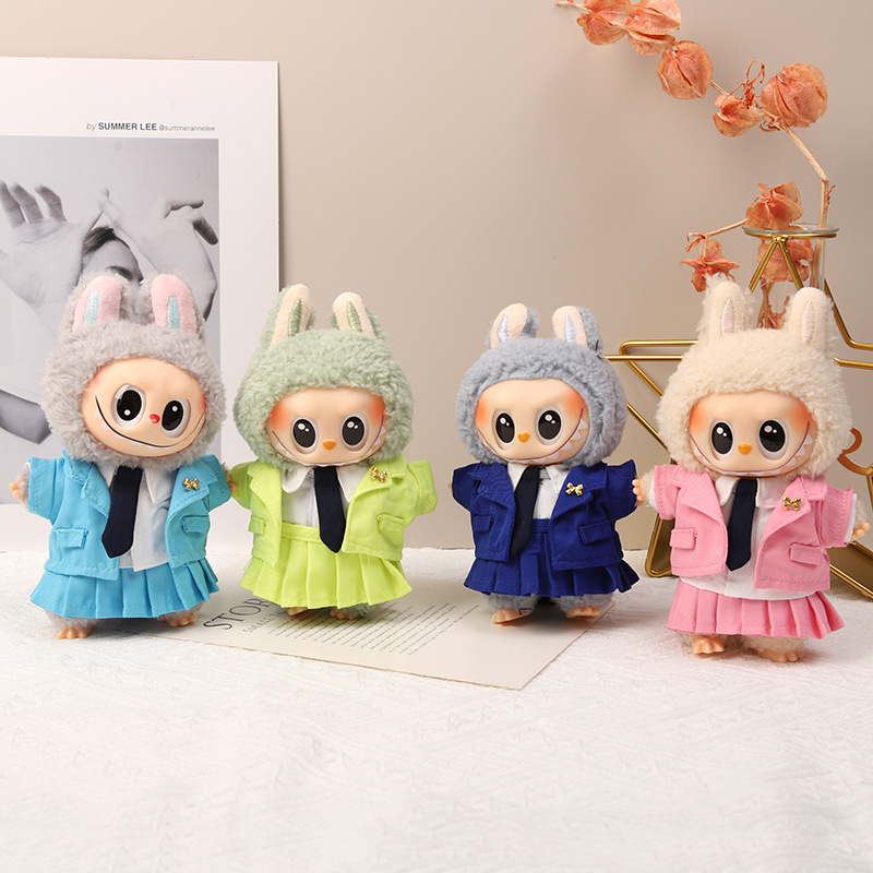 一二三代钥匙扣盲盒拉布布衣服条纹衫菱形格背心套装LABUBU着替萌