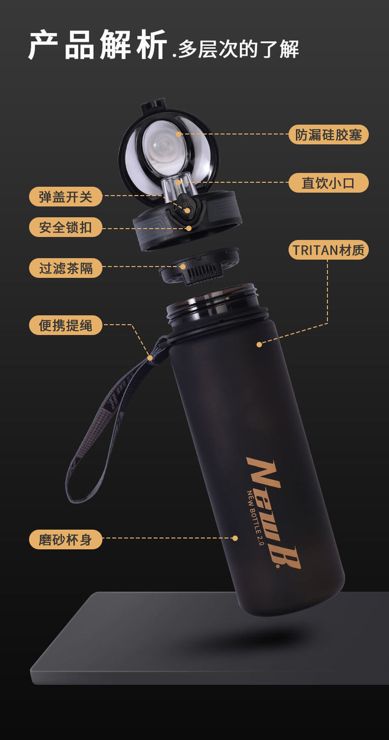 大容量运动水杯子tritan便携泡茶太空杯学生防摔塑料水瓶水壶男士