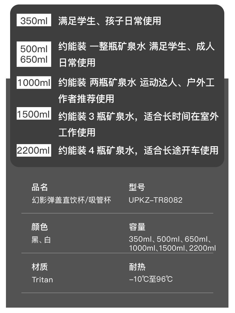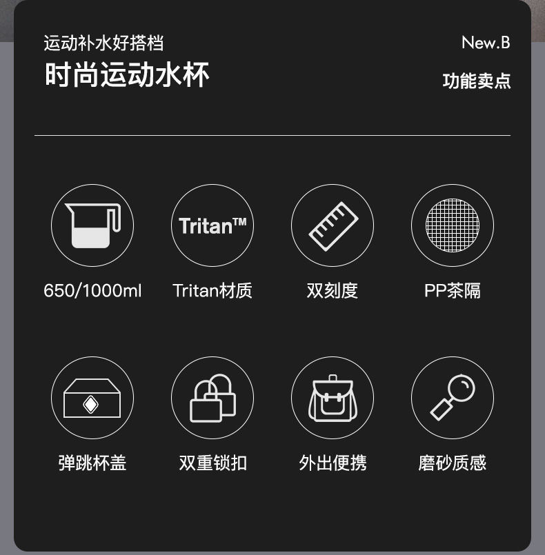 颜色 黑色1000ml【tritan材质】,黑1000ml【tritan升级款】,白色1000ml【tritan材质】,黑色650ml【tritan材质】,白色650ml【tritan材质】,黑色500ml【tritan材质】,黑色500ml【tritan升级款】,白色500ml【tritan材质】,深蓝650ml【tritan升级款】,蓝色500ml【tritan升级款】,白色420ml【pc材质】