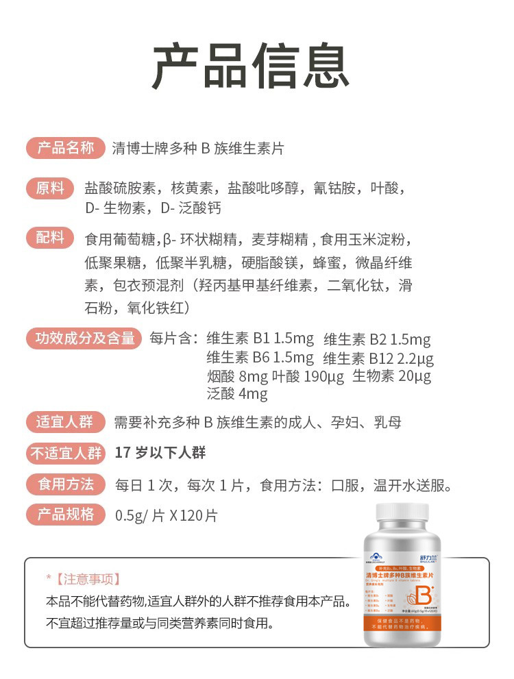 Dr. Qing ブランドの成人用マルチビタミン B タブレット、b1b2b6b12 葉酸ビオチンをサプリメント、メーカー直販