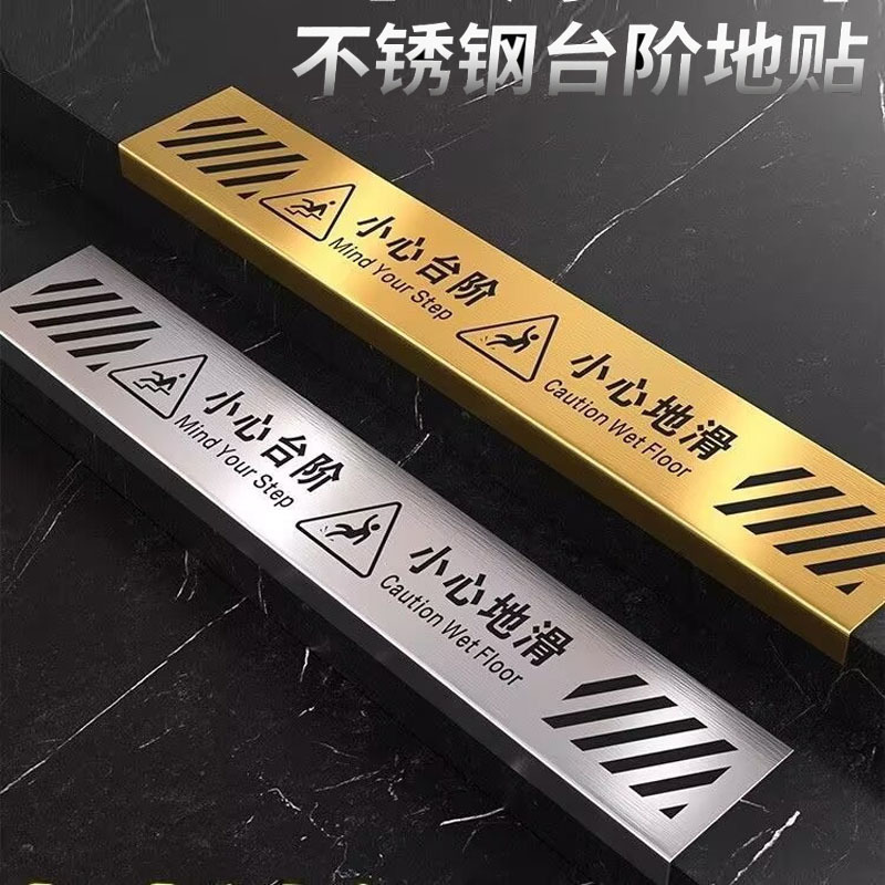 ステップに注意してくださいステンレス鋼の警告標識発光注意滑り警告標識大型階段金属警告標識