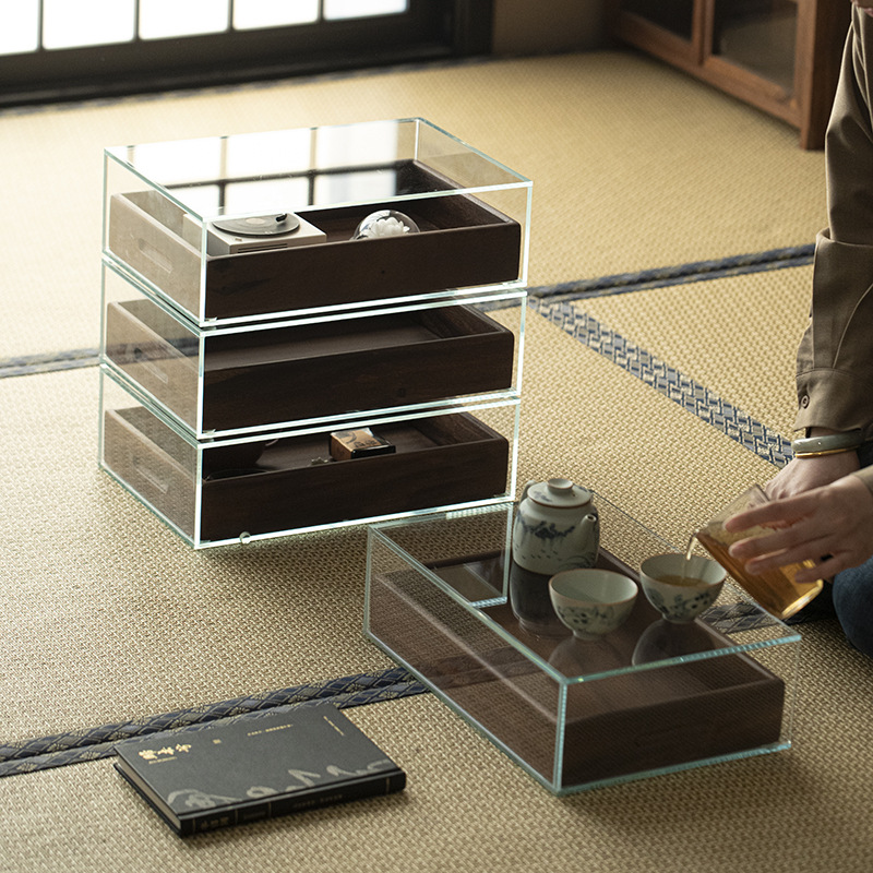 ブラックウォールナット無垢材強化ガラスディスプレイキャビネットティーセットティーカップ収納ボックスキャビネット防塵収納ディスプレイ歯科キャビネット