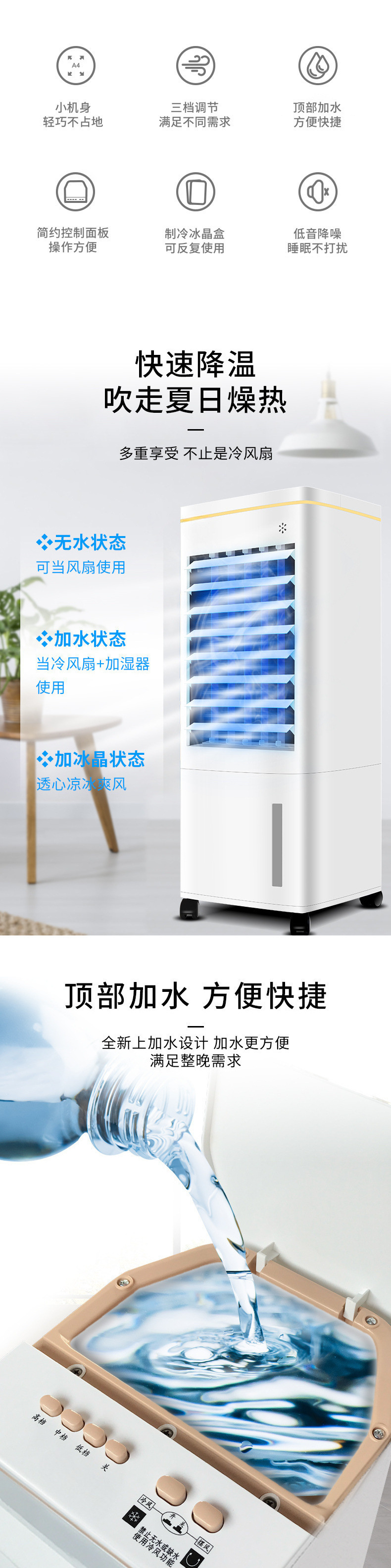 空調ファン家庭用冷風ファン小型空調寮水冷ファン空冷ファンオフィス Chigo 寝室空調ファン