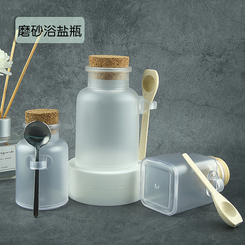 100g200グラム300mlABSフロスト浴塩瓶ペットボトルコルク蓋木スプーン粉クリームケース