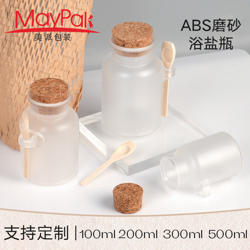 100g 200 300ml absフロスト浴塩瓶ペットボトルコルク蓋木スプーン粉クリームケース