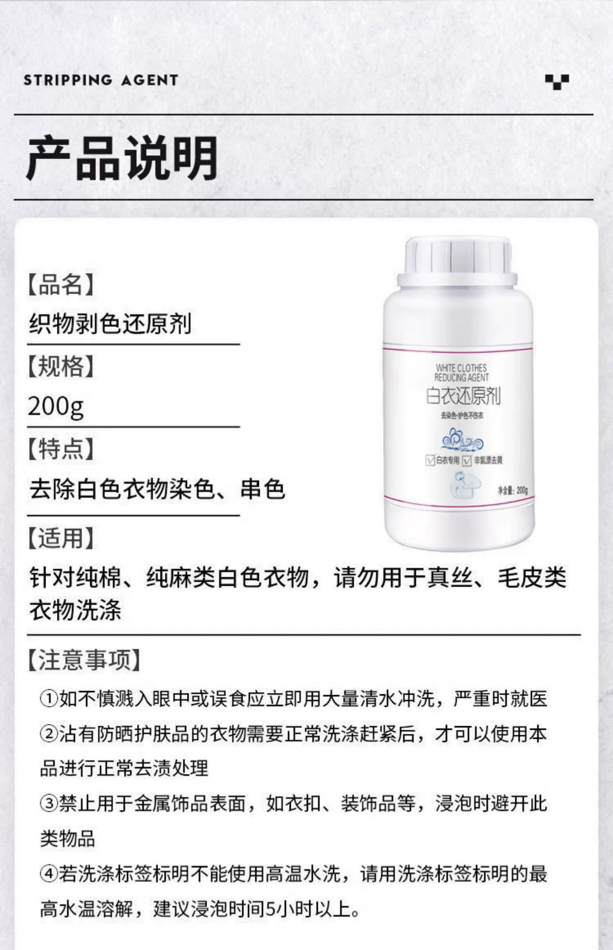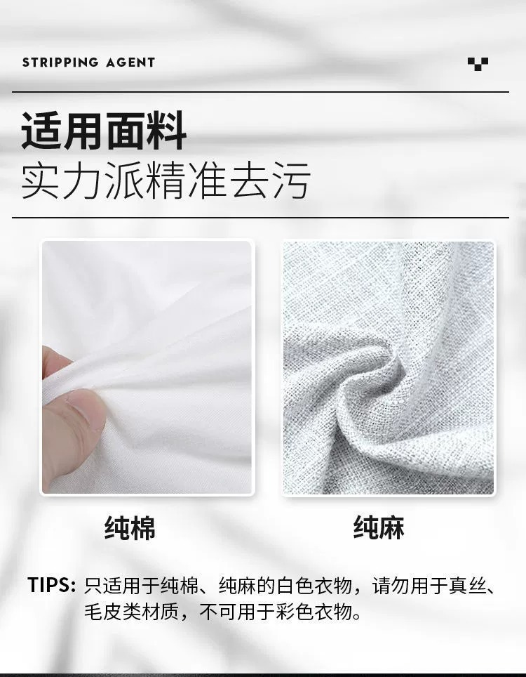 白い衣類の黄ばみを除去し、白くする漂白剤、染色糸の色除去剤、白い衣類を洗うための特別な神