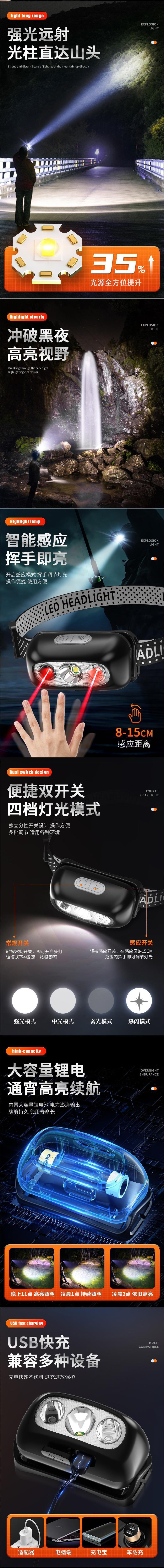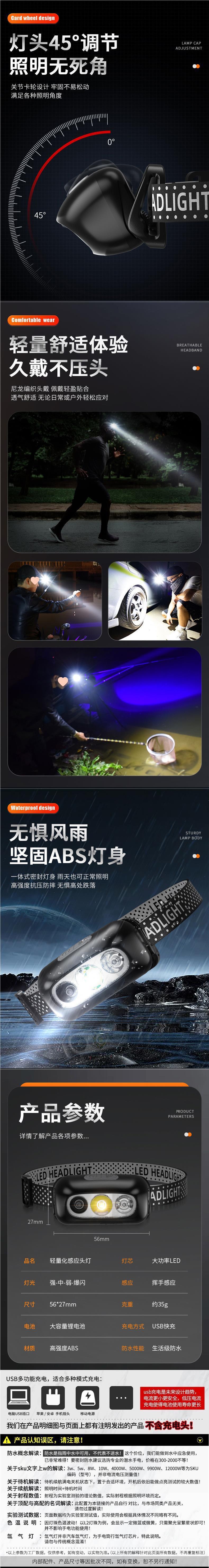 LED強光超亮ヘッドライト航続釣り専用超軽感応充電式携帯用ヘッドセット