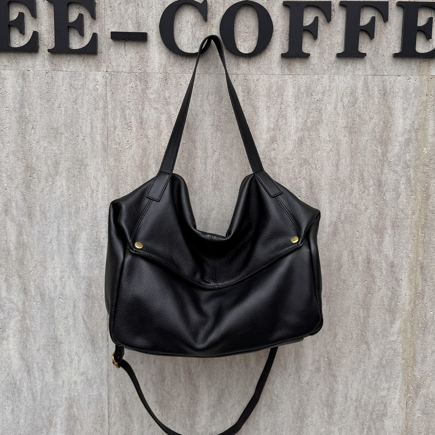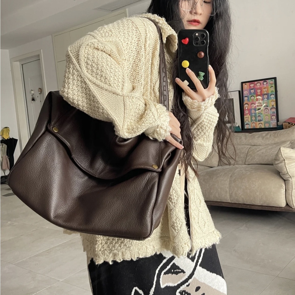 大容量质感头层牛皮托特包欧美风百搭复古简约软皮单肩包休闲女包