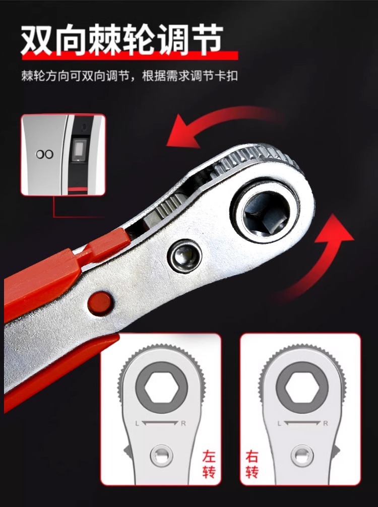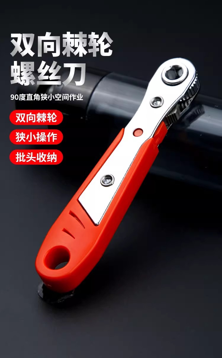 双向棘轮扳手L型直角弯头多功能梅花一字十字螺丝刀起子套筒组合