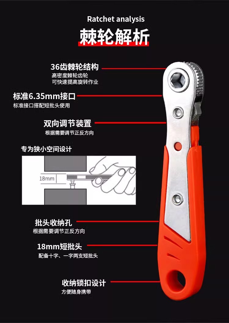 狭小空间用36齿棘轮螺丝刀双向正反转L型弯头拐角挡泥板起子工具