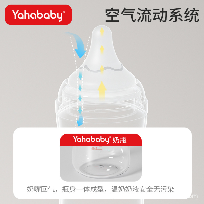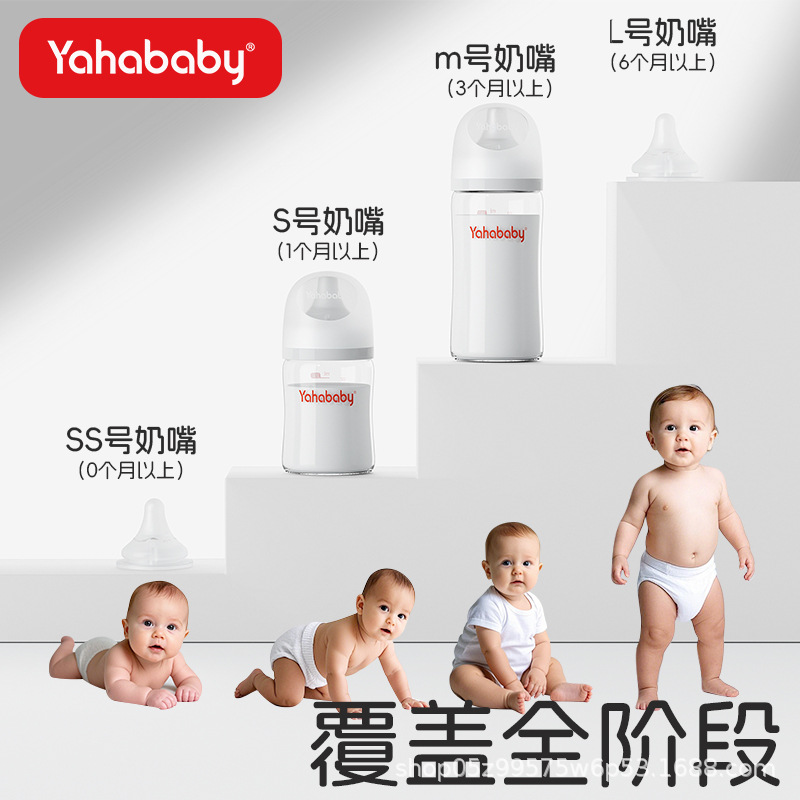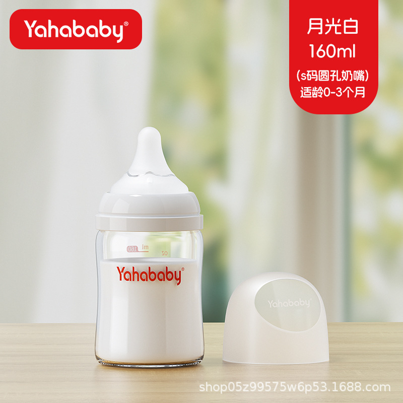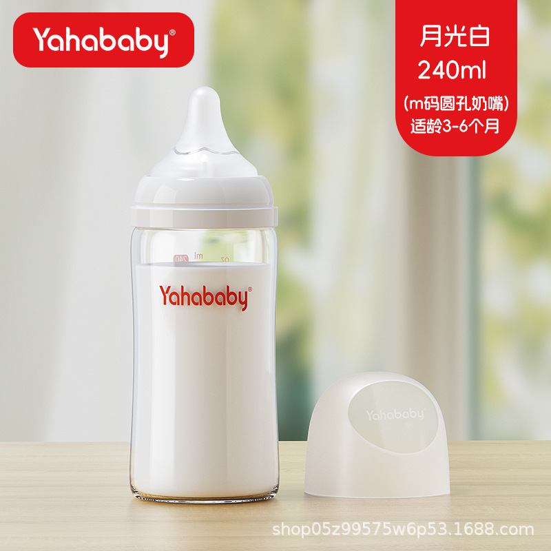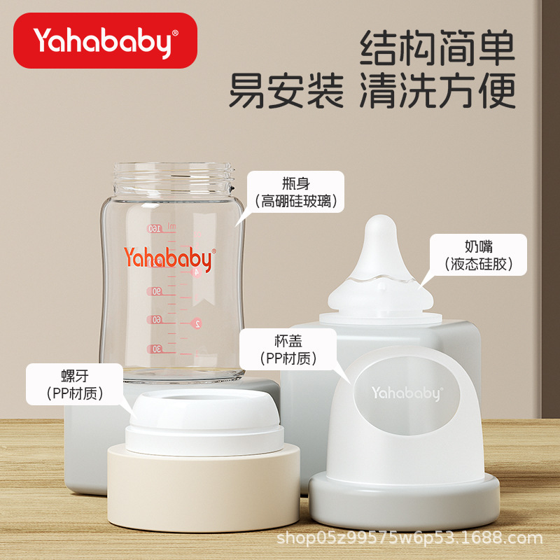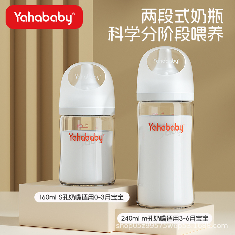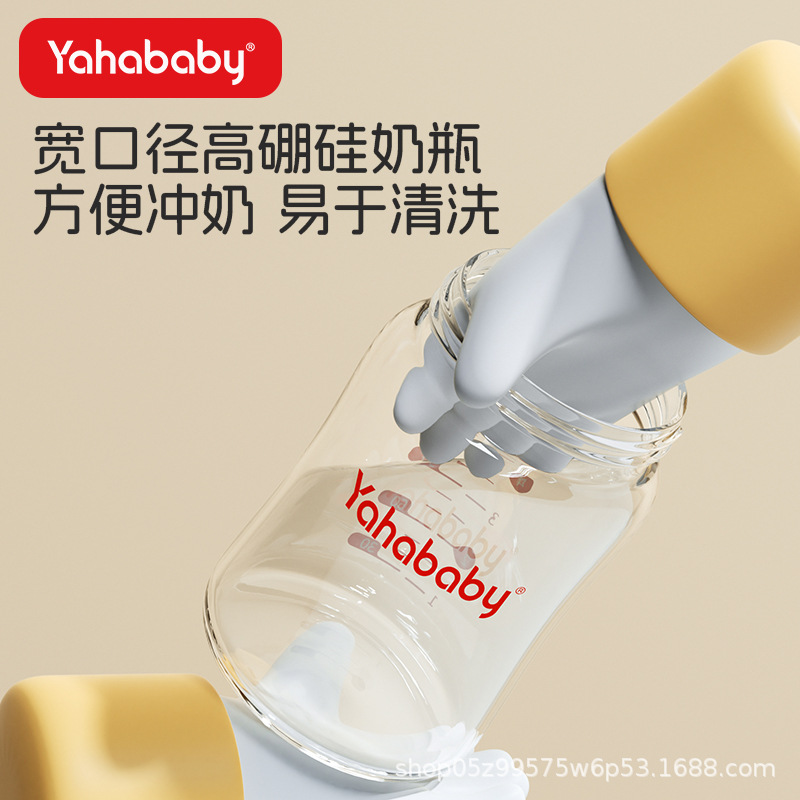 Yahababy透明高硼硅玻璃奶瓶宽口径防胀气婴儿0-12个月可高温消毒