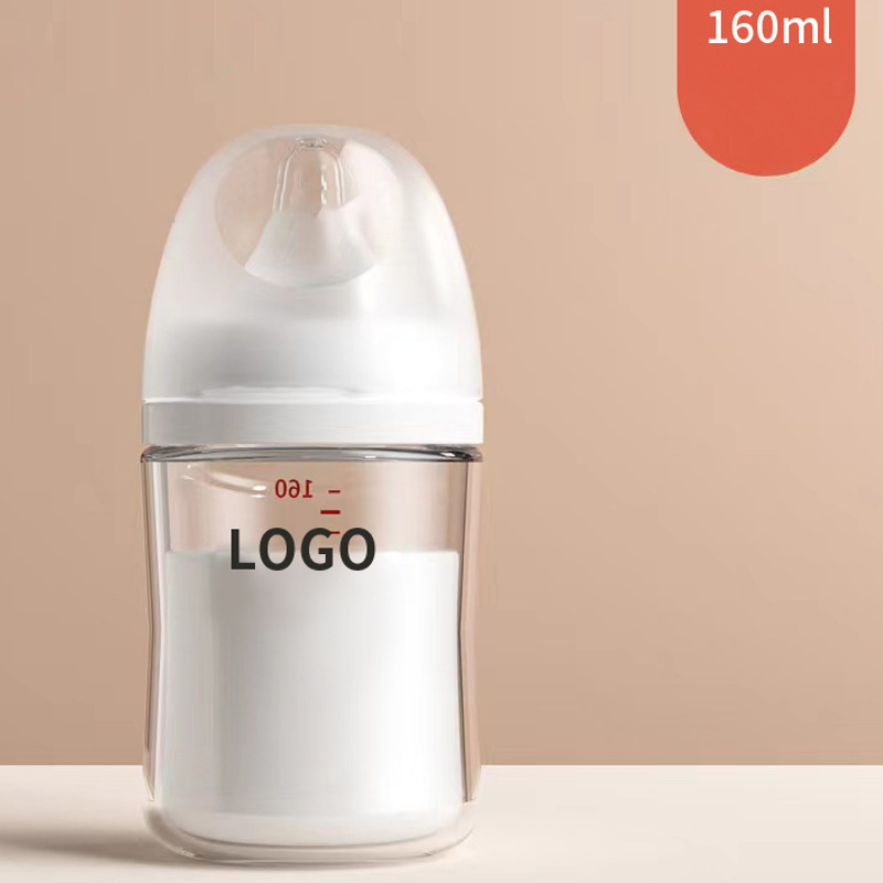 新生児用の直径の広いガラスボトル、窒息防止、疝痛防止、飲料水と薬の投与用の小さなボトル、高ホウケイ酸ガラス素材