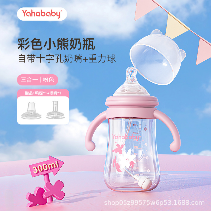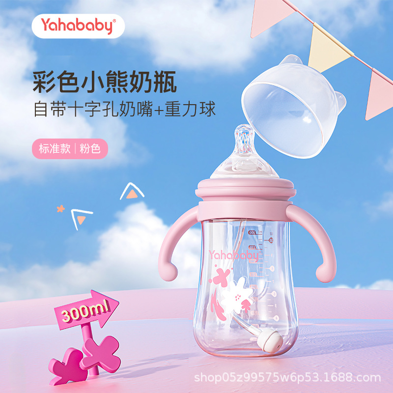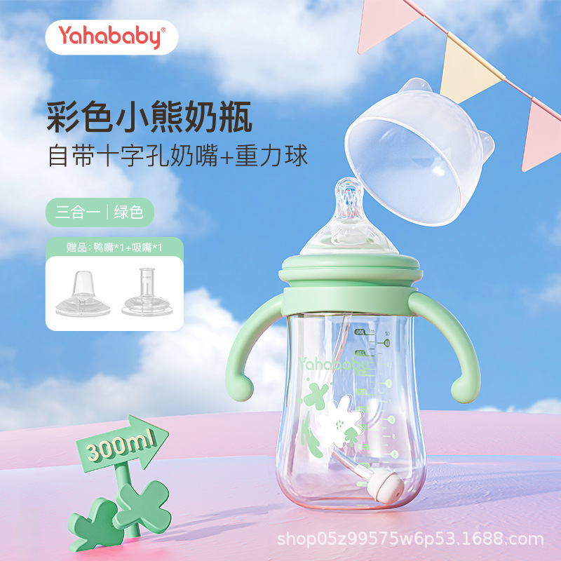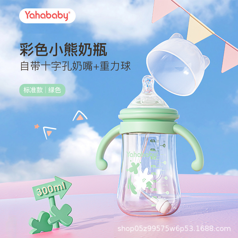 Yahababy カラフルなクマの哺乳瓶、落下防止、飛沫防止、疝痛防止、食品グレードの哺乳瓶、ストローカップ、正規品