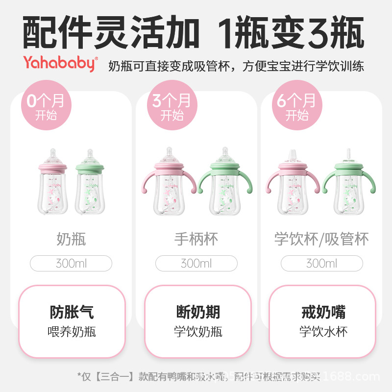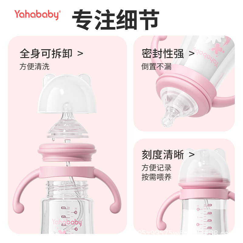 Yahababy 塗装された高ホウケイ酸ガラス哺乳瓶新生児哺乳瓶模造母乳抗疝痛高温滅菌
