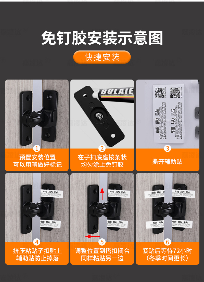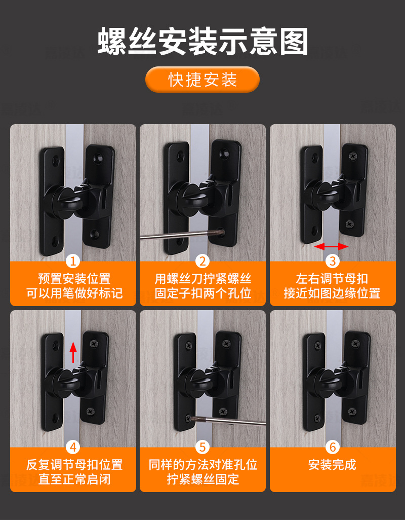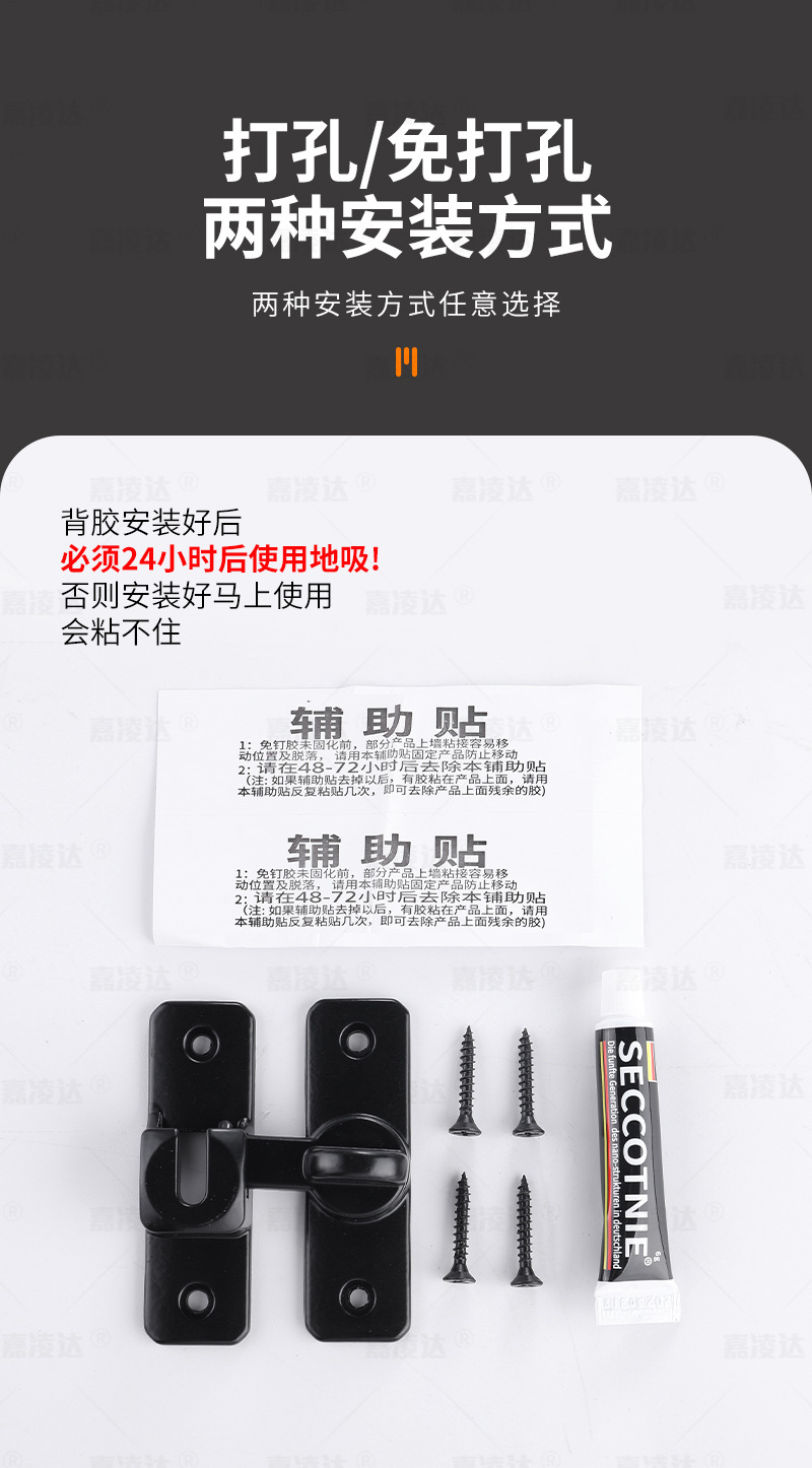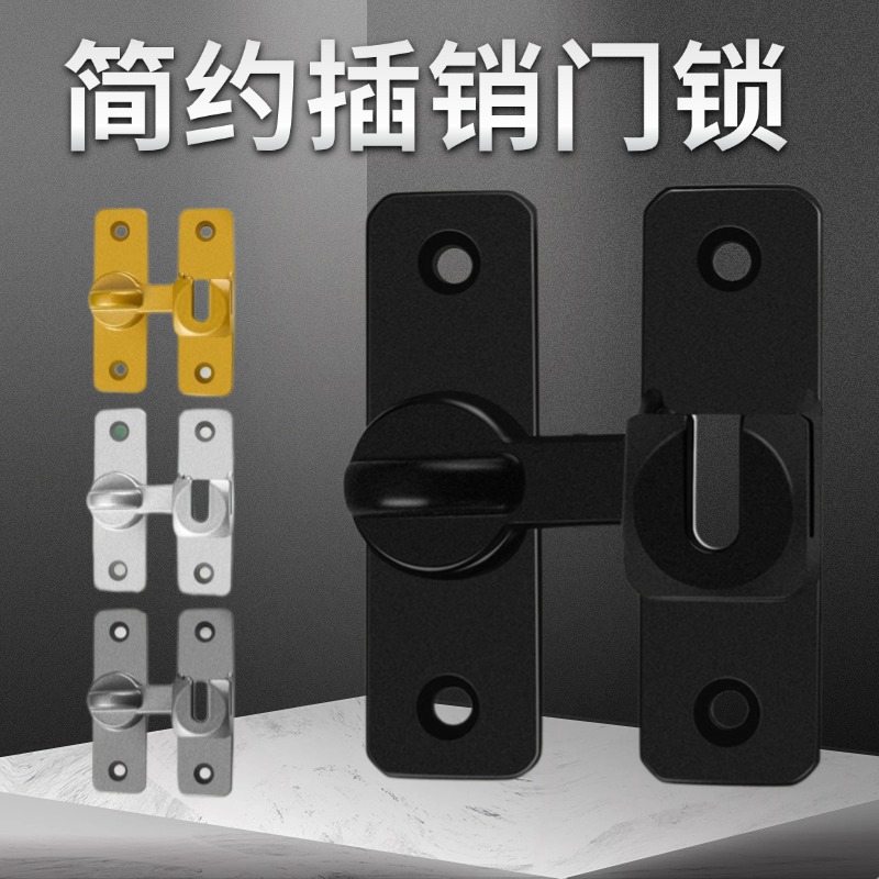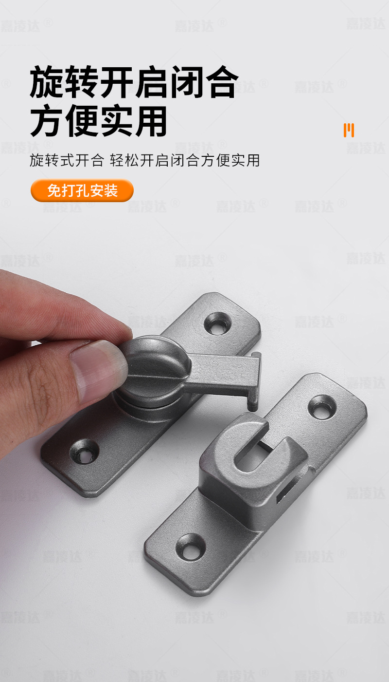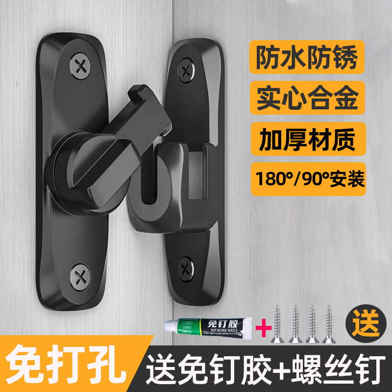 アルミ合金製ソリッドドアロック 家庭用90度180度厚型バックル 浴室用穴あけ不要ロック 盗難防止ドアロック