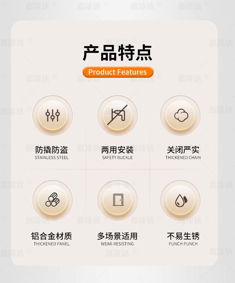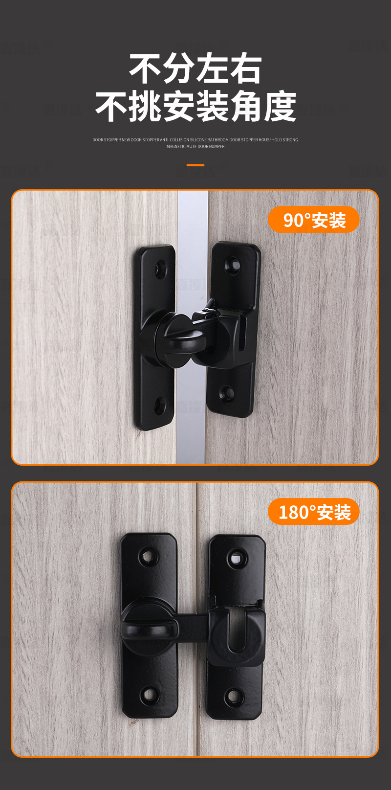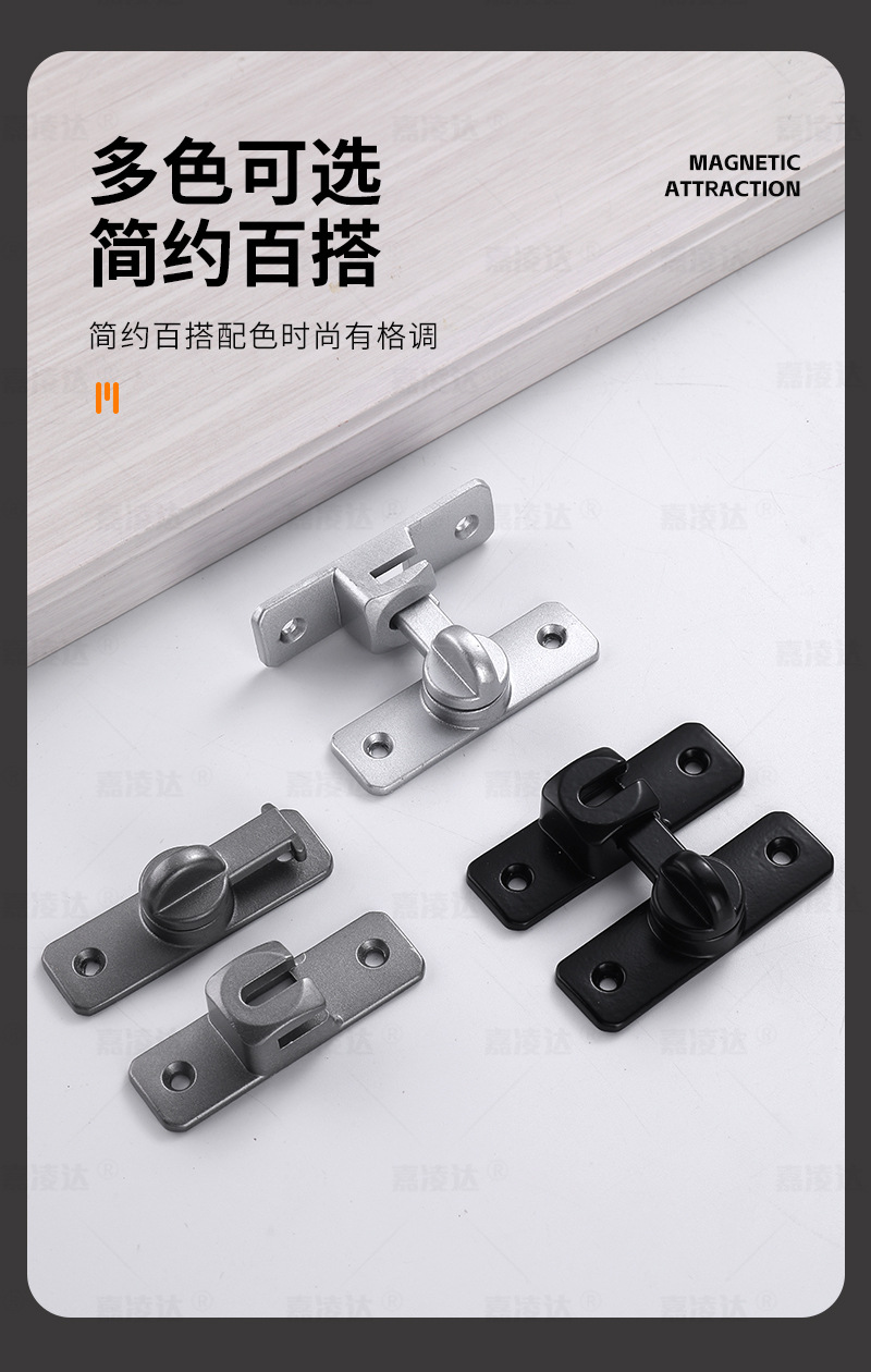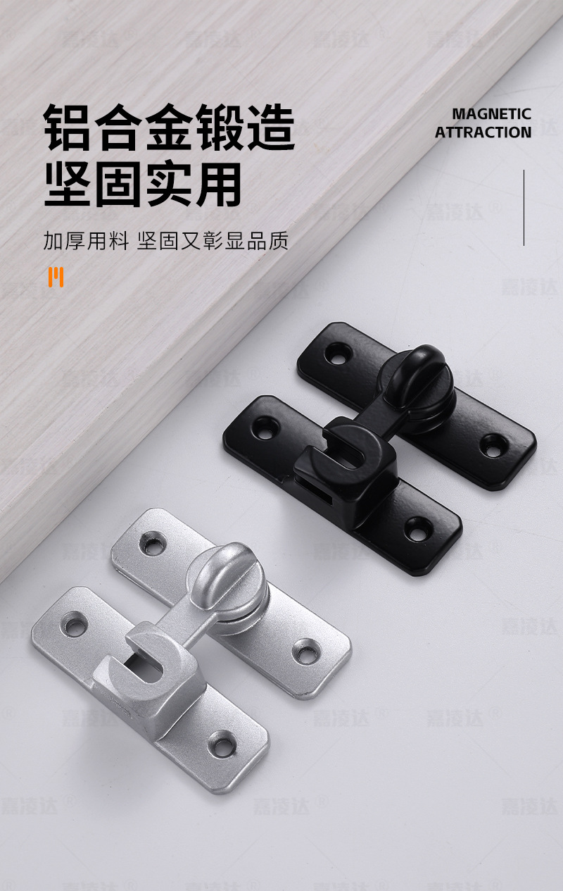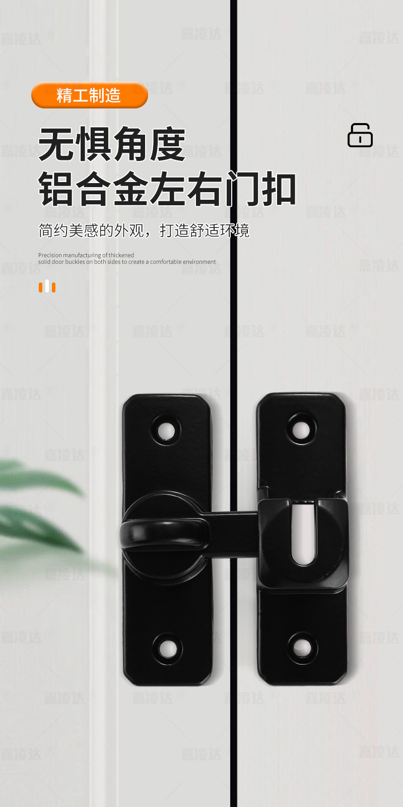 铝合金搭扣安全扣 90度180度实心多角度家用门左右锁扣 防盗扣