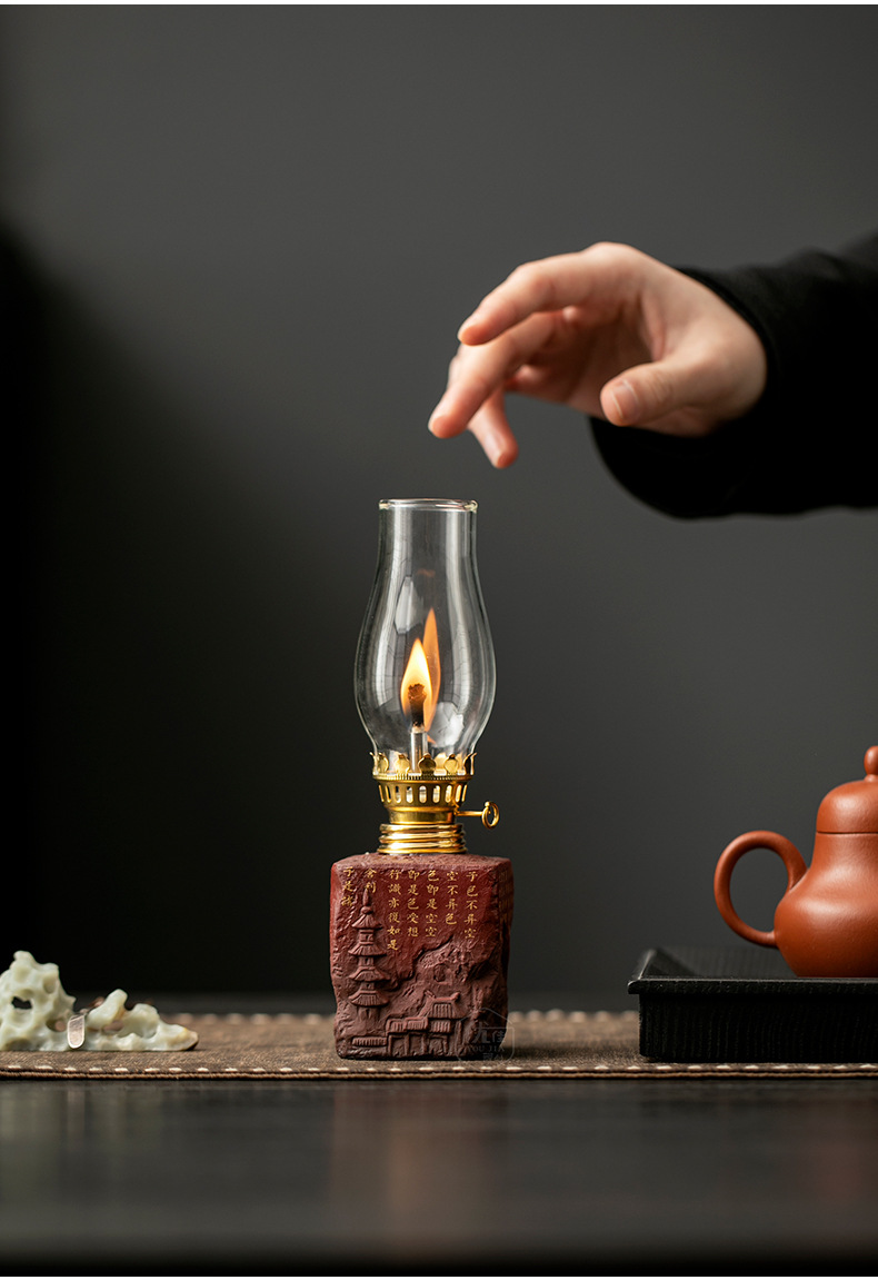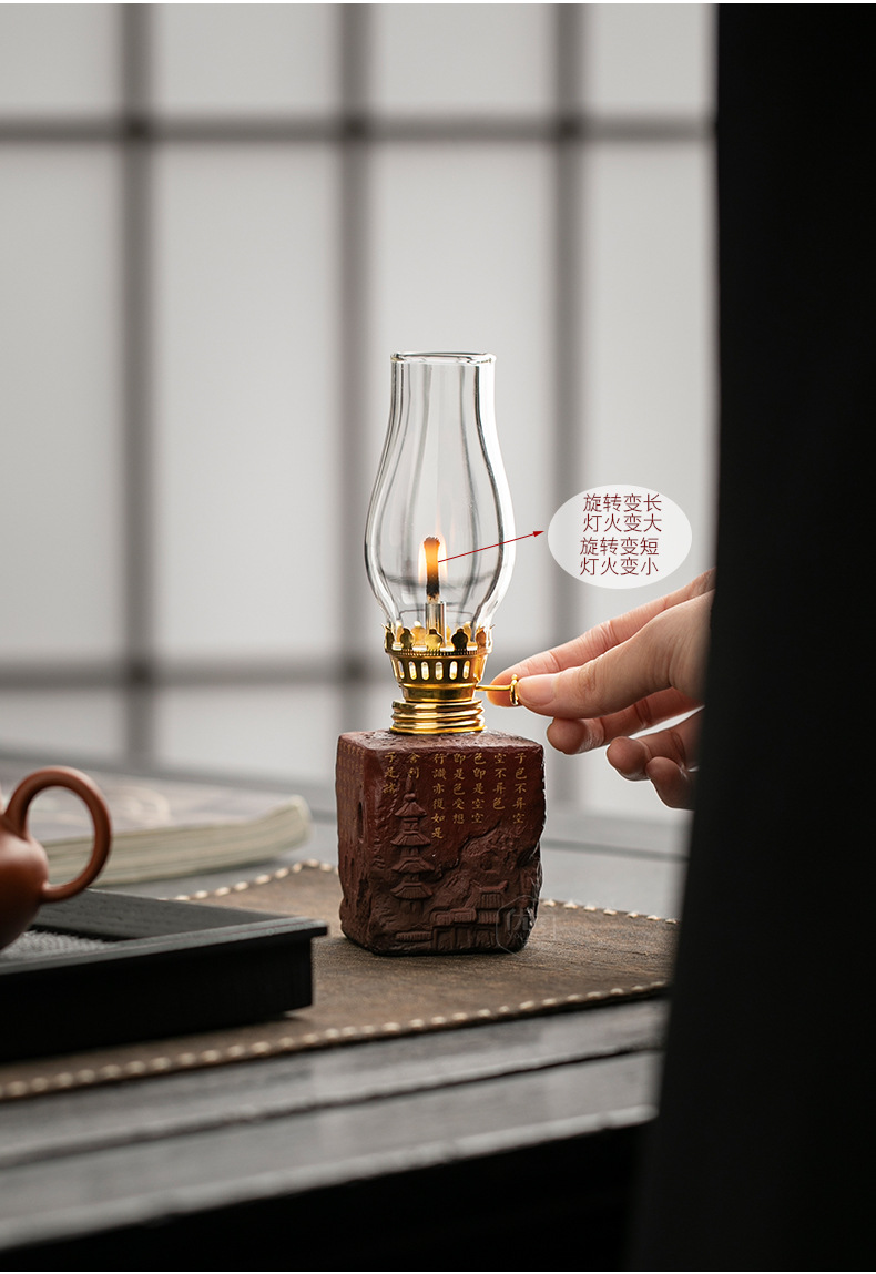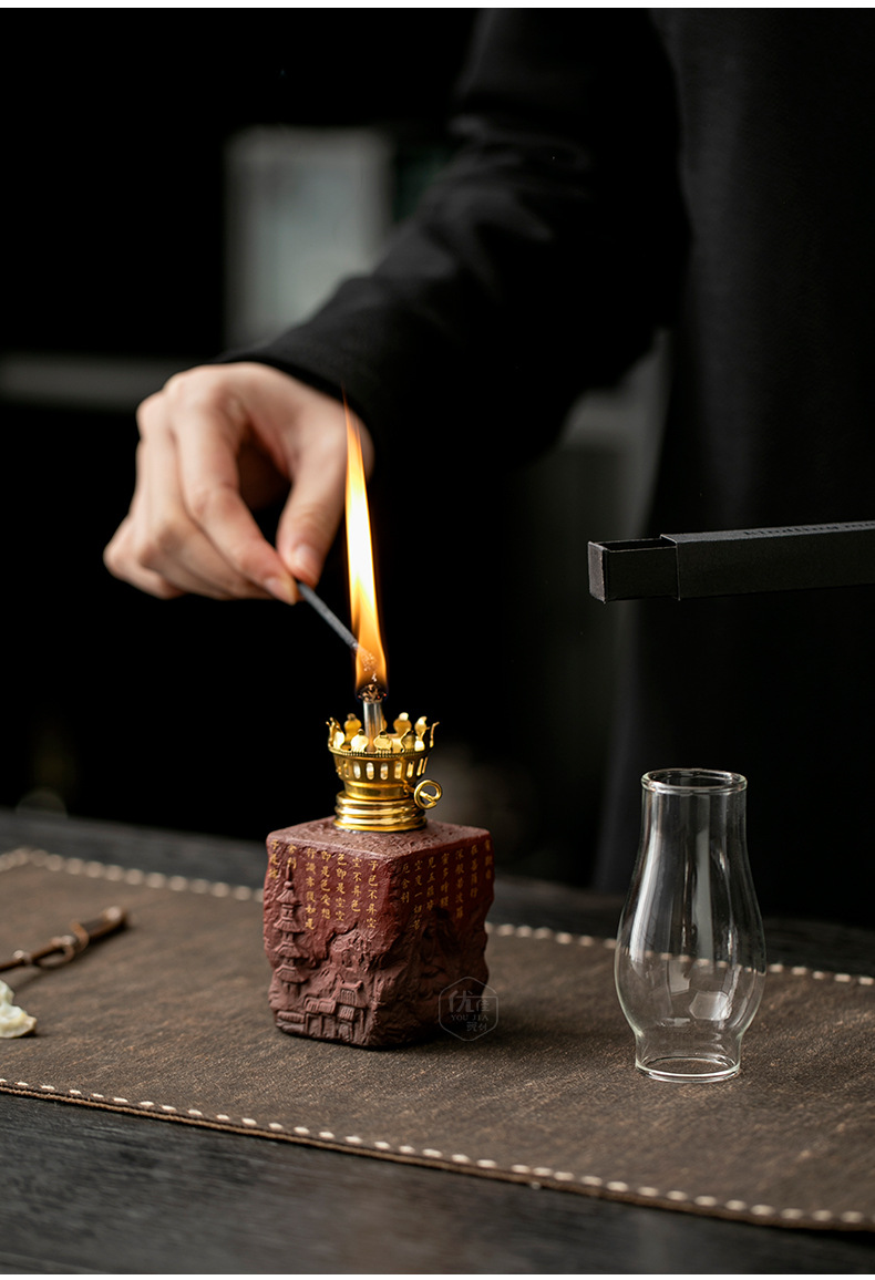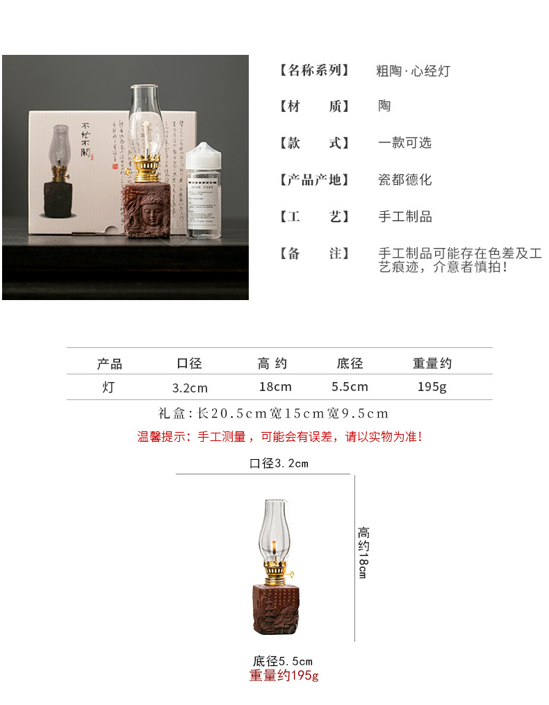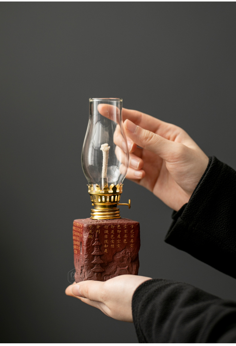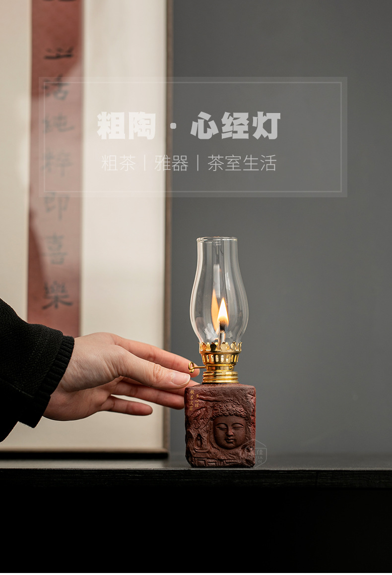 セラミックオイルランプ、バターランプ、寝室常夜灯、中国風装飾品、仏陀ランプ、般若心経、レトロ灯油ランプ、雰囲気ランプ