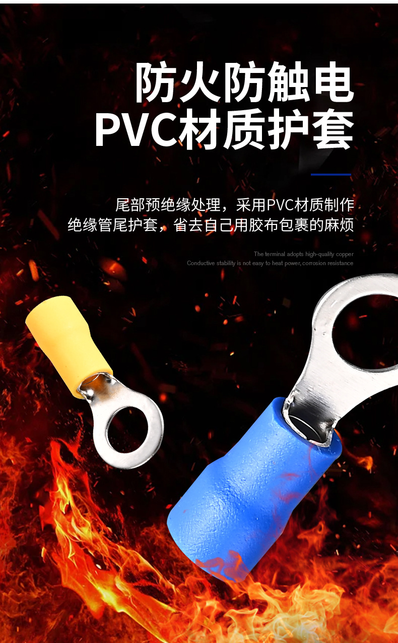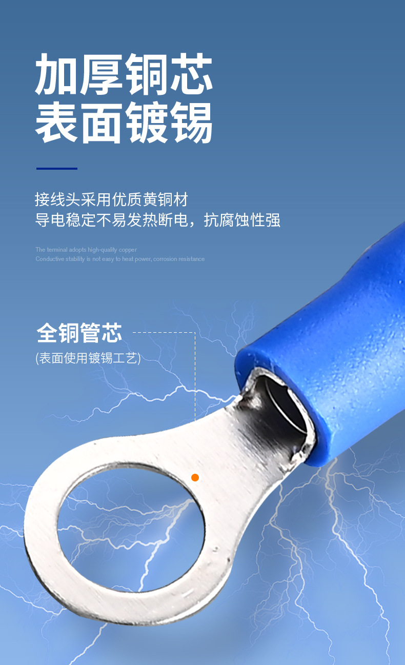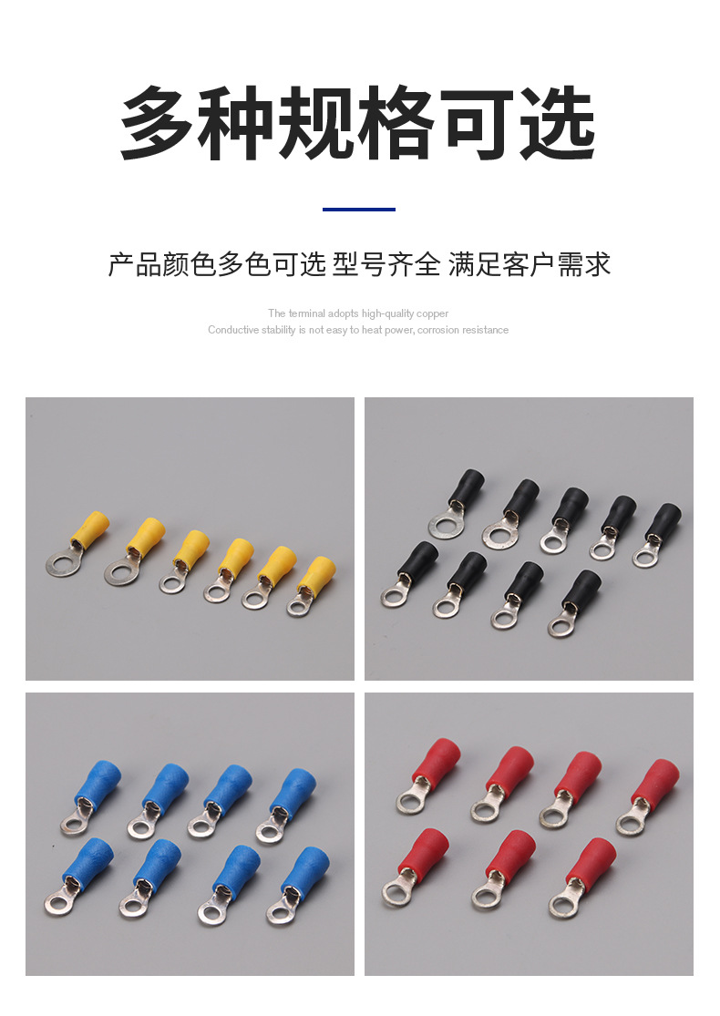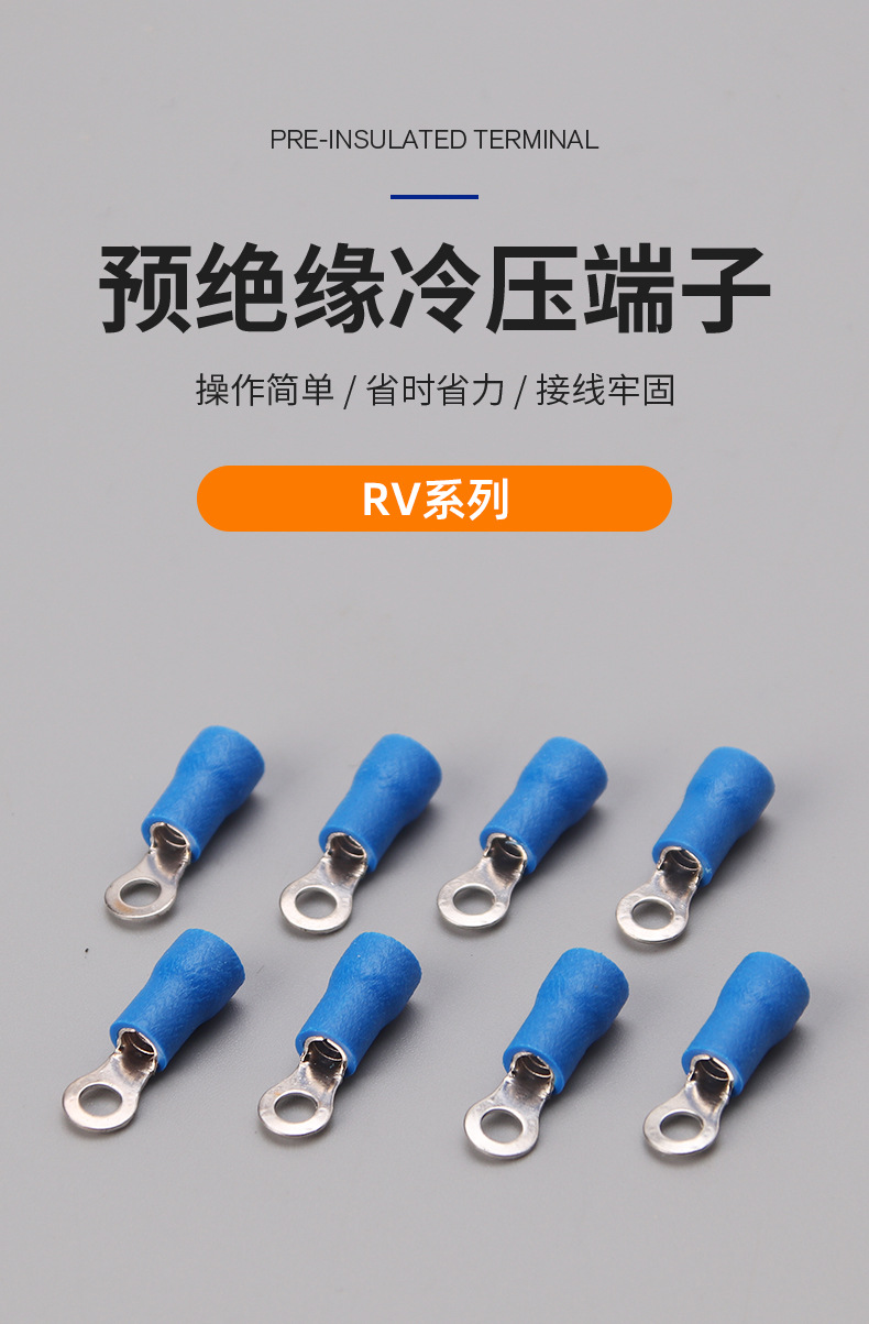 RV预绝缘端子冷压端子O型接线铜鼻子电线快速接线头圆形接线端子