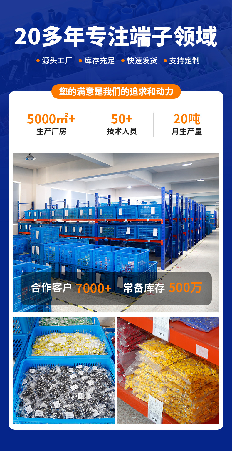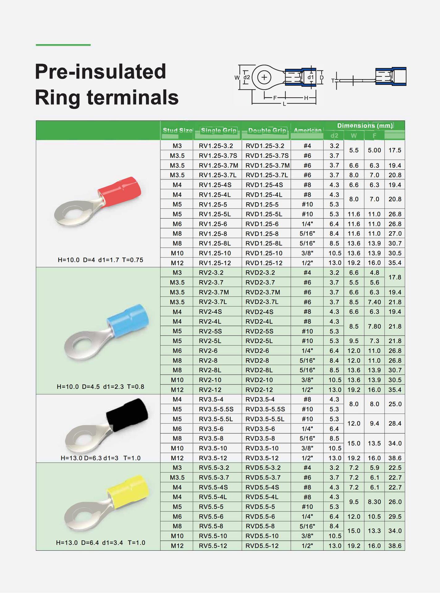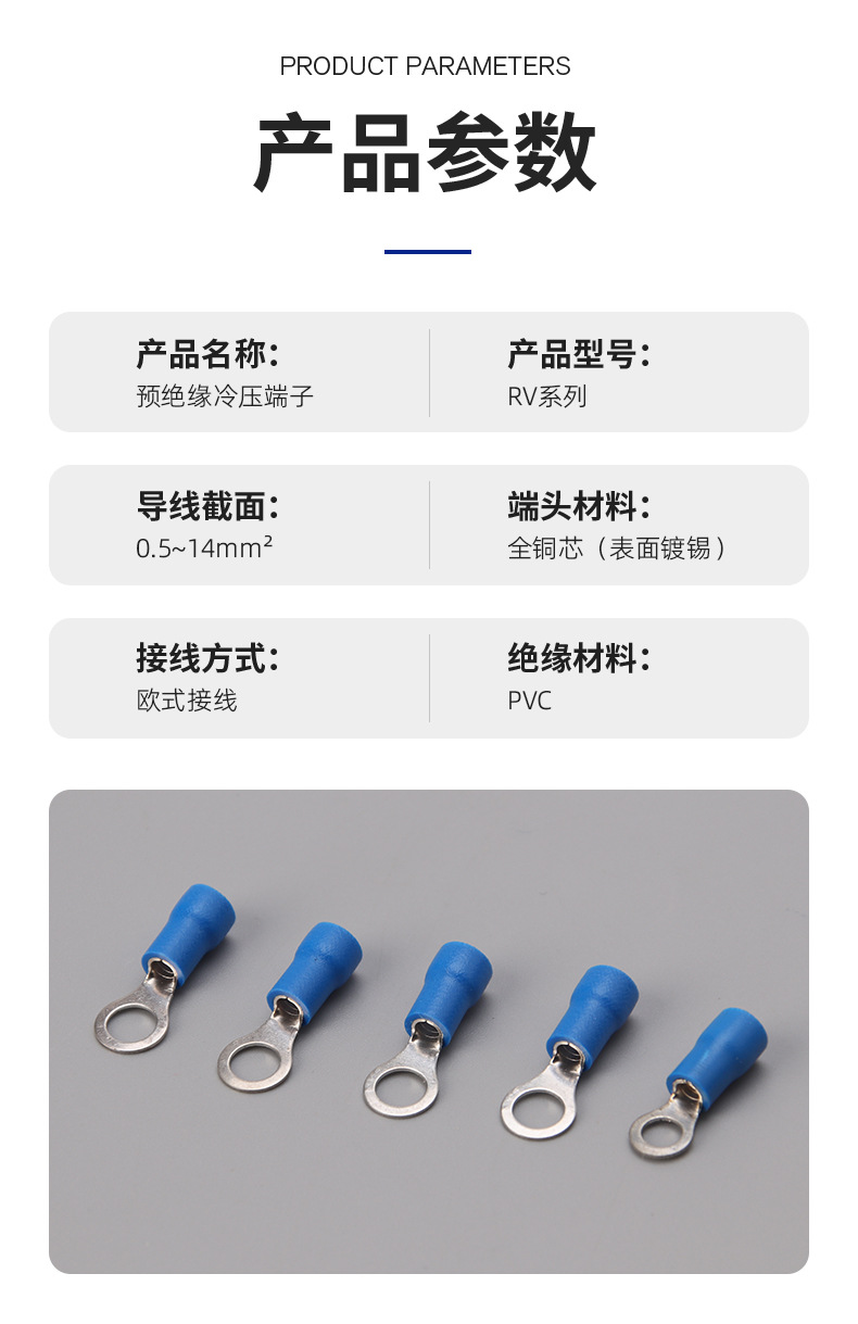 RV预绝缘端子冷压端子O型接线铜鼻子电线快速接线头圆形接线端子
