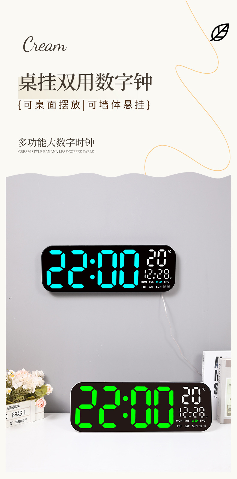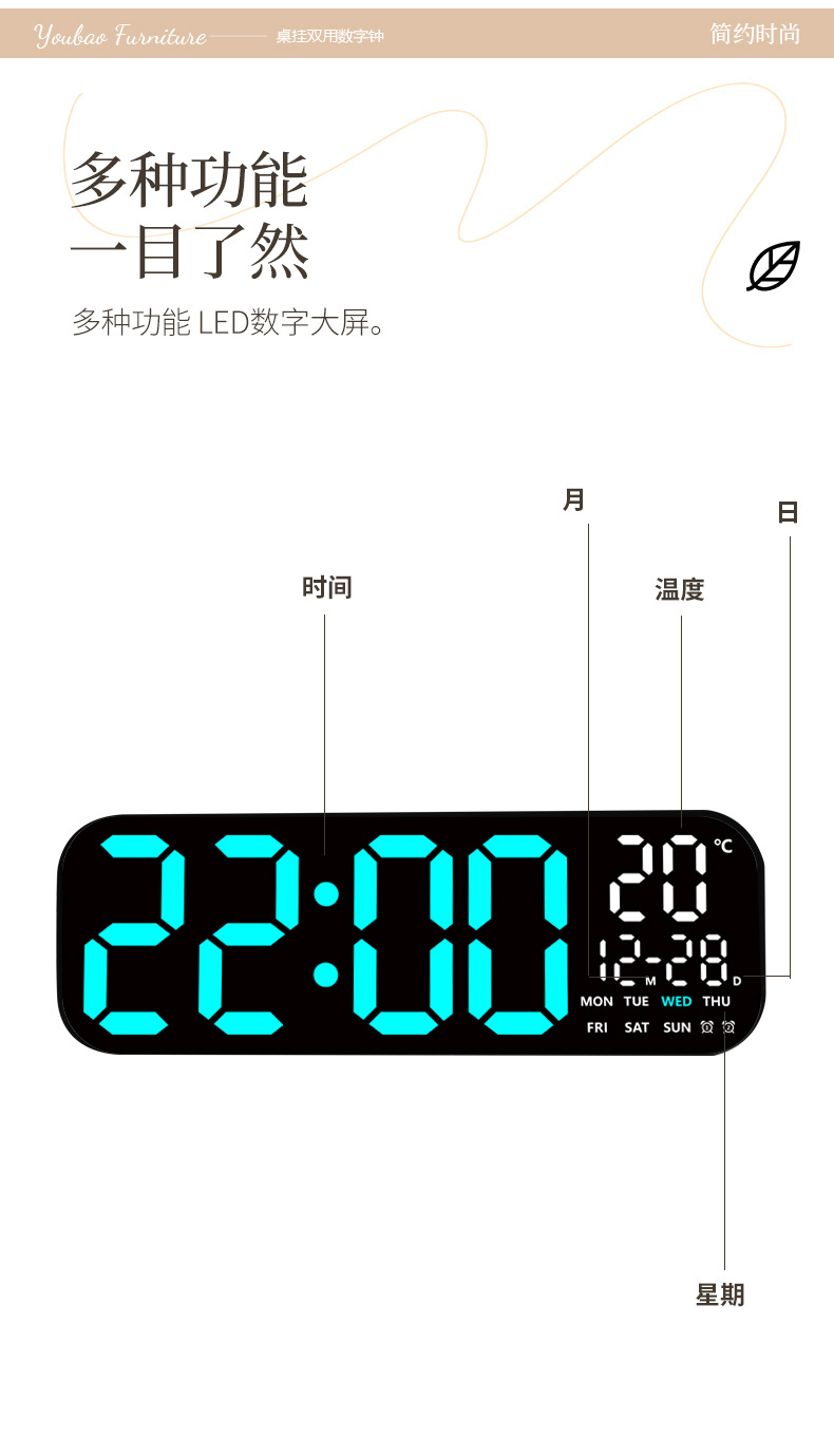 飾る,温度計,暗闇で光る,永久カレンダー,Moon Phase,アラーム,カレンダー,24時間表示,曜日表示,月表示