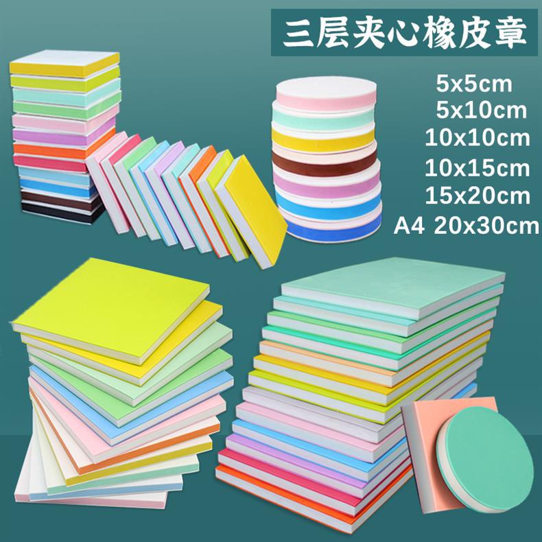 橡皮砖橡皮章套装彩虹色三层夹心橡皮版画雕刻专用橡皮砖A4方圆形