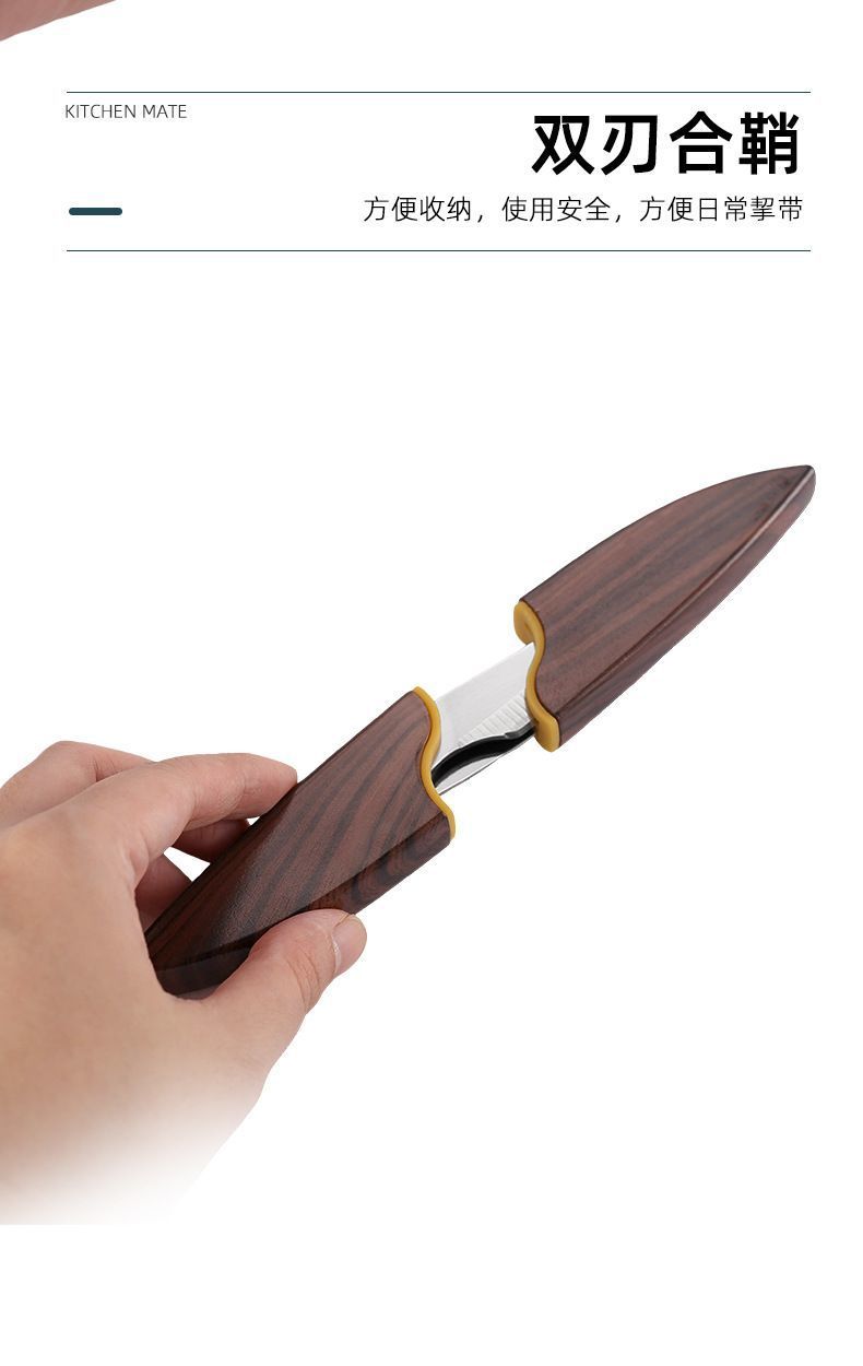 木の魚の双刀の果物の刀のステンレスの双頭の携帯の2つの一体型のナイフの果物の刀は皮の刀の2を削ります。