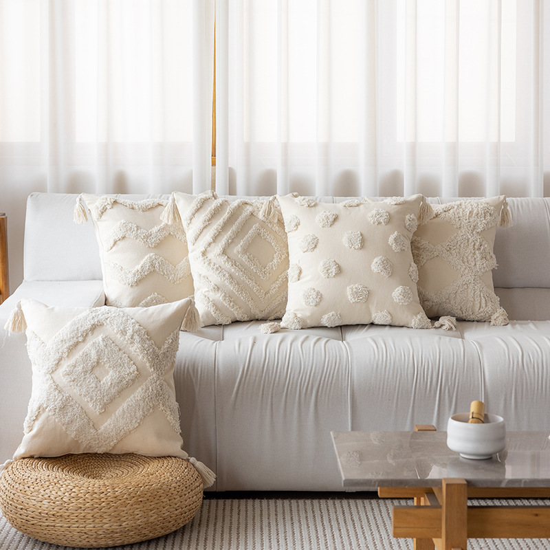 ボヘミアン流蘇抱き枕カバー立体タフティング刺繍ソファ枕カバー幾何学線装飾純色クッション