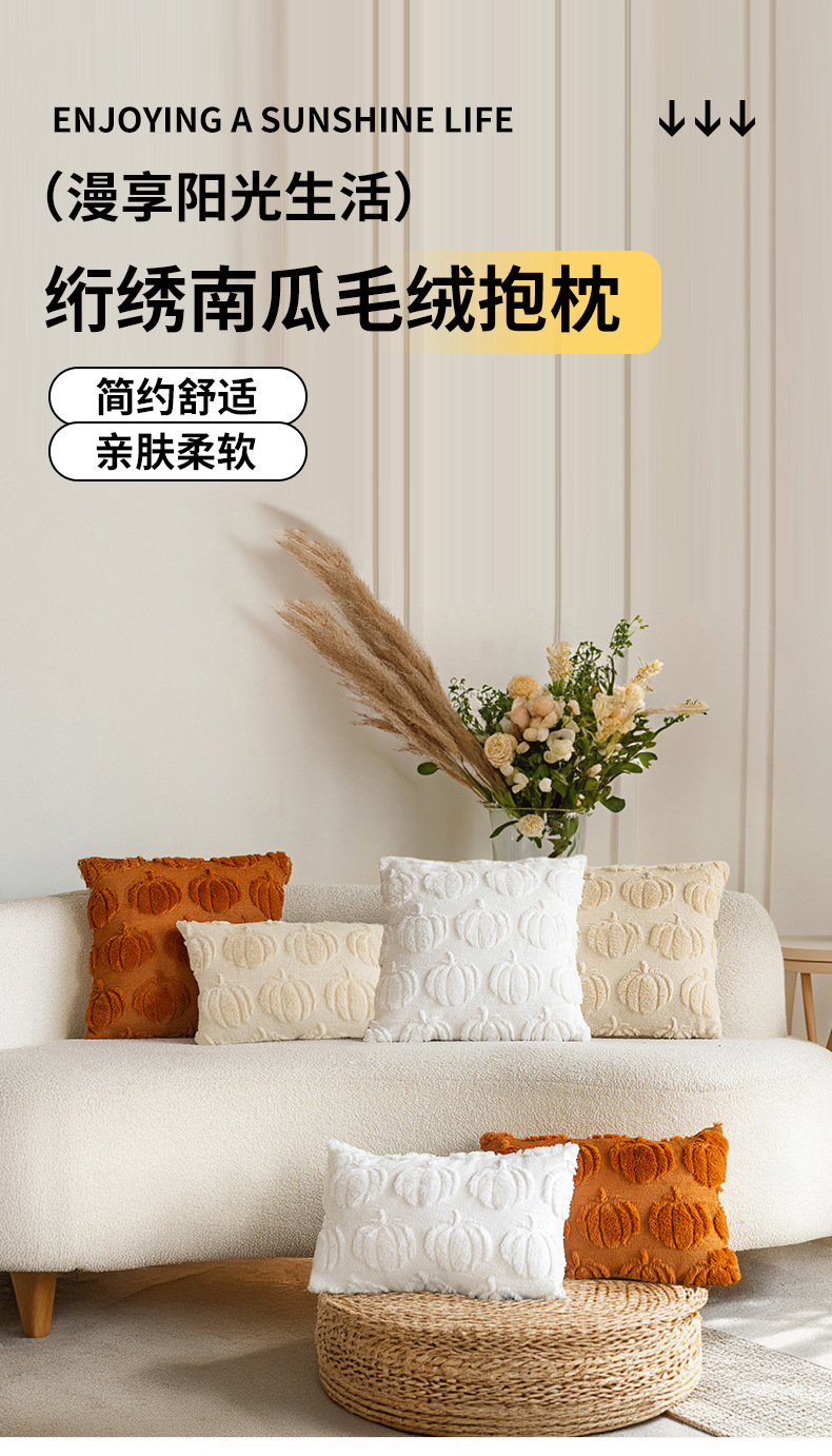 跨境热销毛绒抱枕套不含芯高级感沙发床头靠枕办公室纯色靠背垫