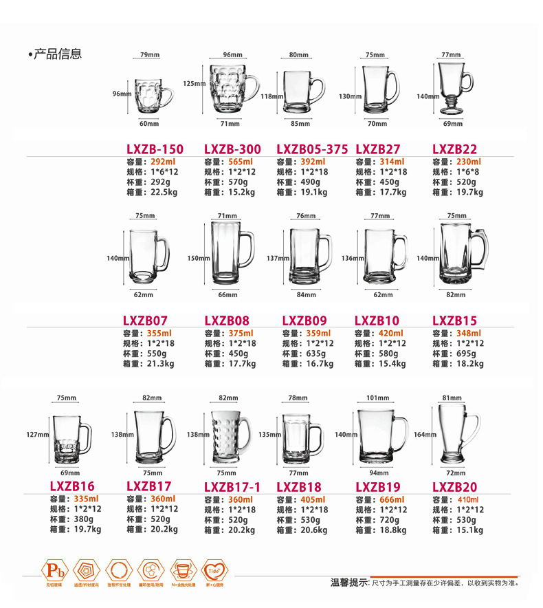 LXZB-150(292ml/72本),LXZB-300(565ml/24本),LXZB05-375(392ml/36本),LXZB07(355ml/36本入),LXZB08(375ml/36本入),LXZB09(359ml/24本入),LXZB10(420ml/24本),LXZB15(348ml/24本),LXZB16(335ml/24本),LXZB17(360ml/24本),LXZB17-1(360ml/36本),LXZB18(405ml/36本入),LXZB19(666ml/24本),LXZB20(385ml/24本),LXZB27(314ml/36本入),LXZB22(230ml/48本)
