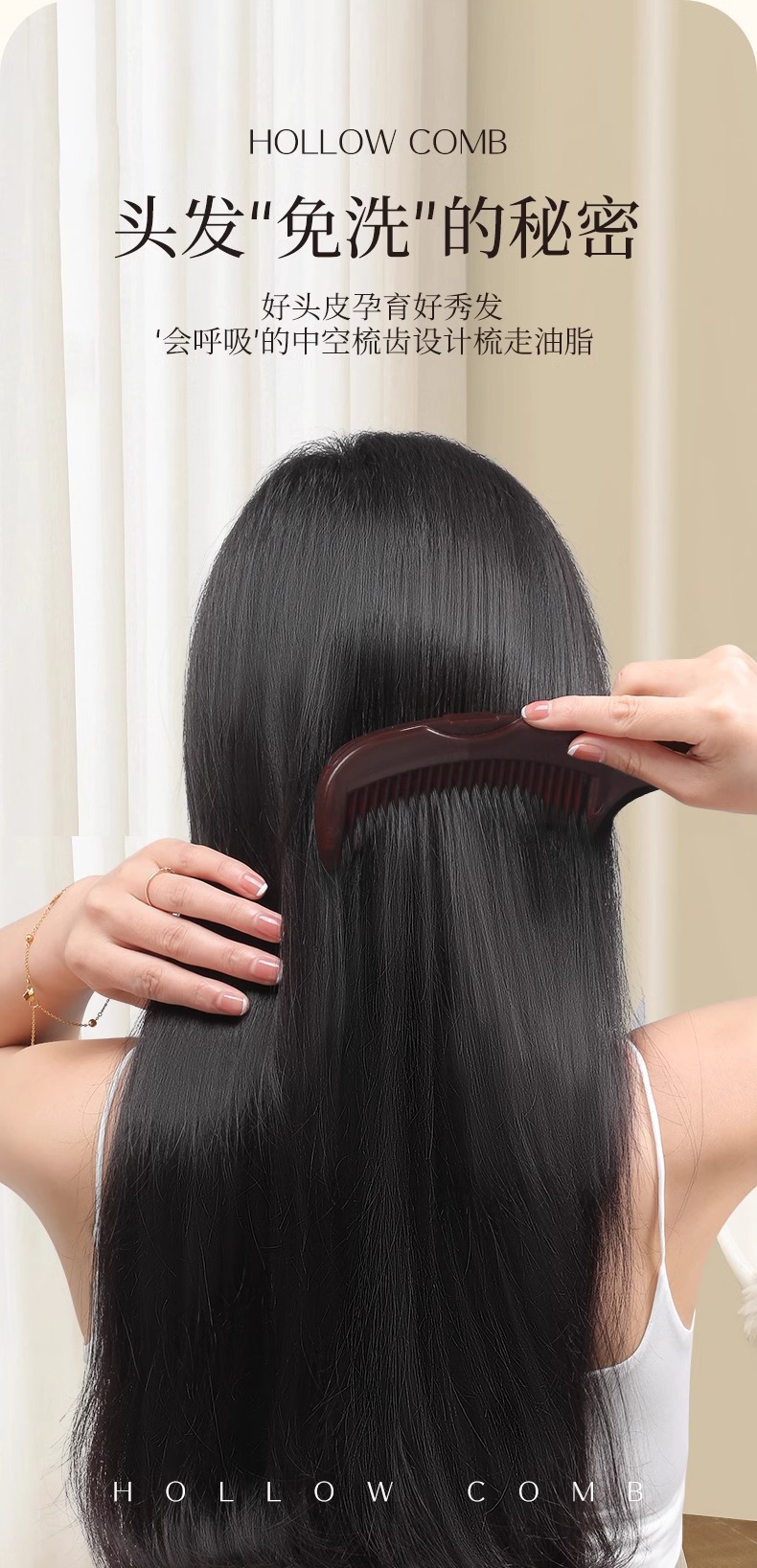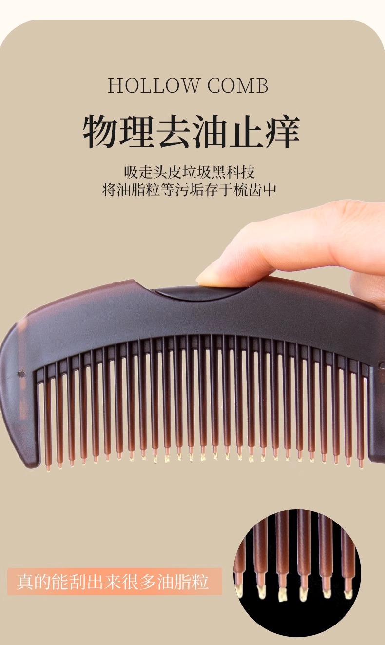 洗わないヘアコーム、グリース粒子コーム、女性用中空コーム、フケ防止、油除去、中空グリースコーム、家庭用ヘアコーム