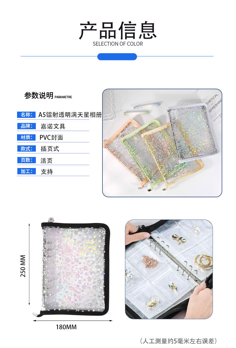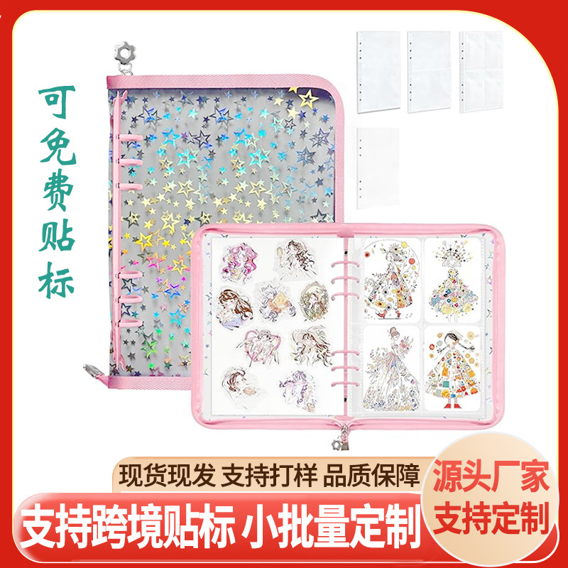 A5星星拉链贴纸收纳活页夹贴纸收纳相册带口袋适合收集整理和展示