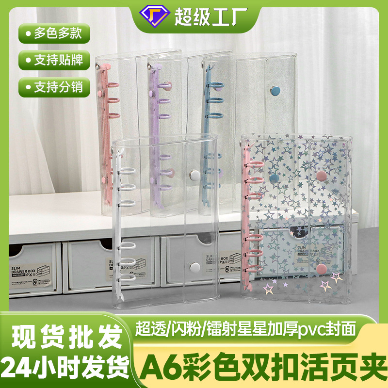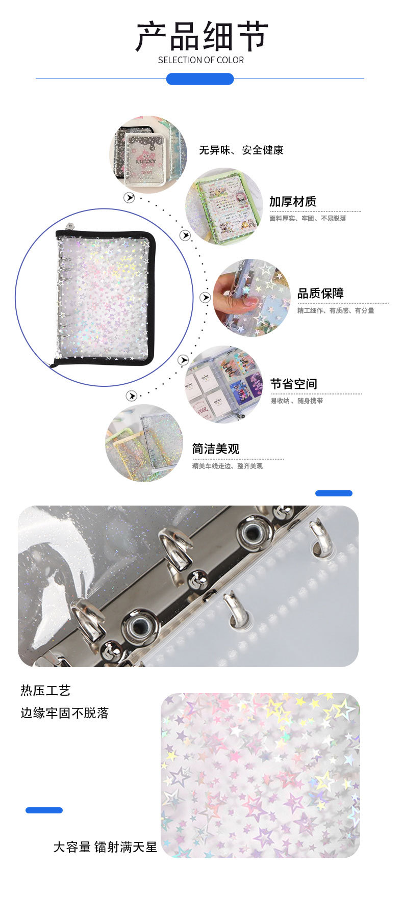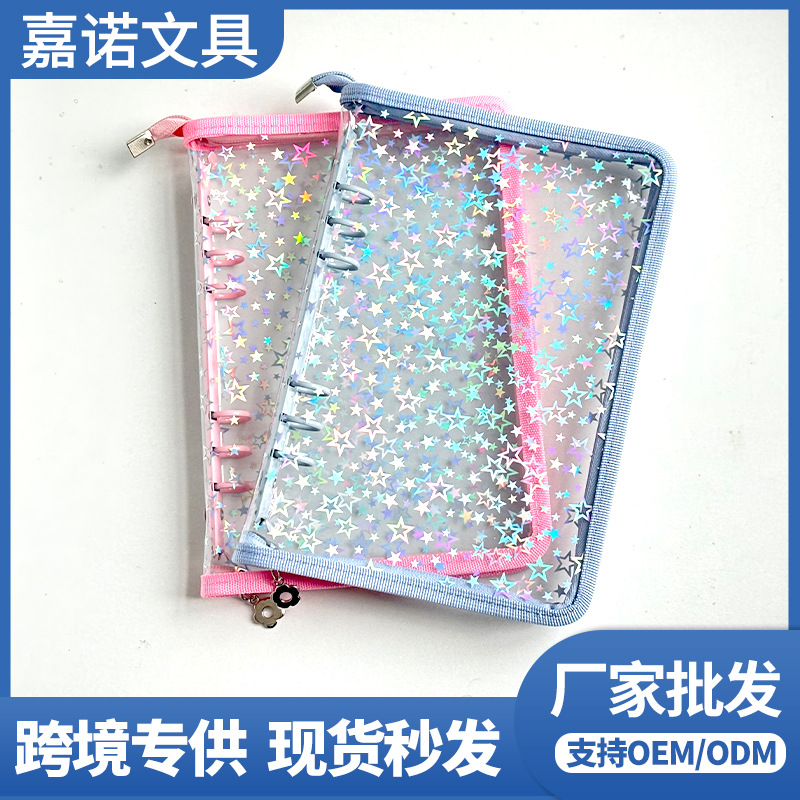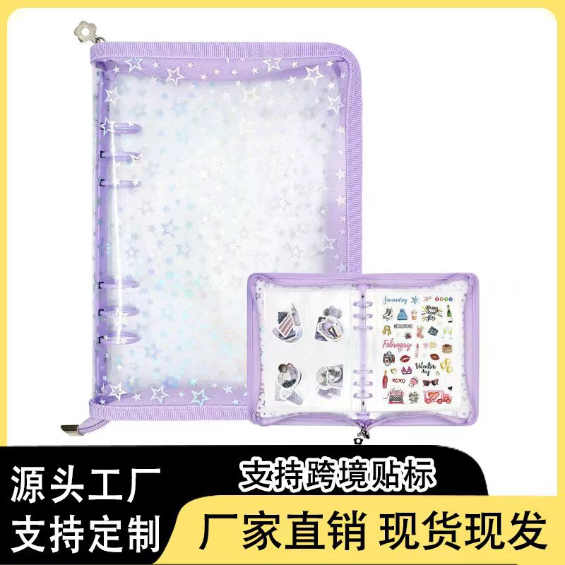 现货PVC拉链袋活页夹炫彩星星A5活页夹明星收纳手帳本透明6孔外壳