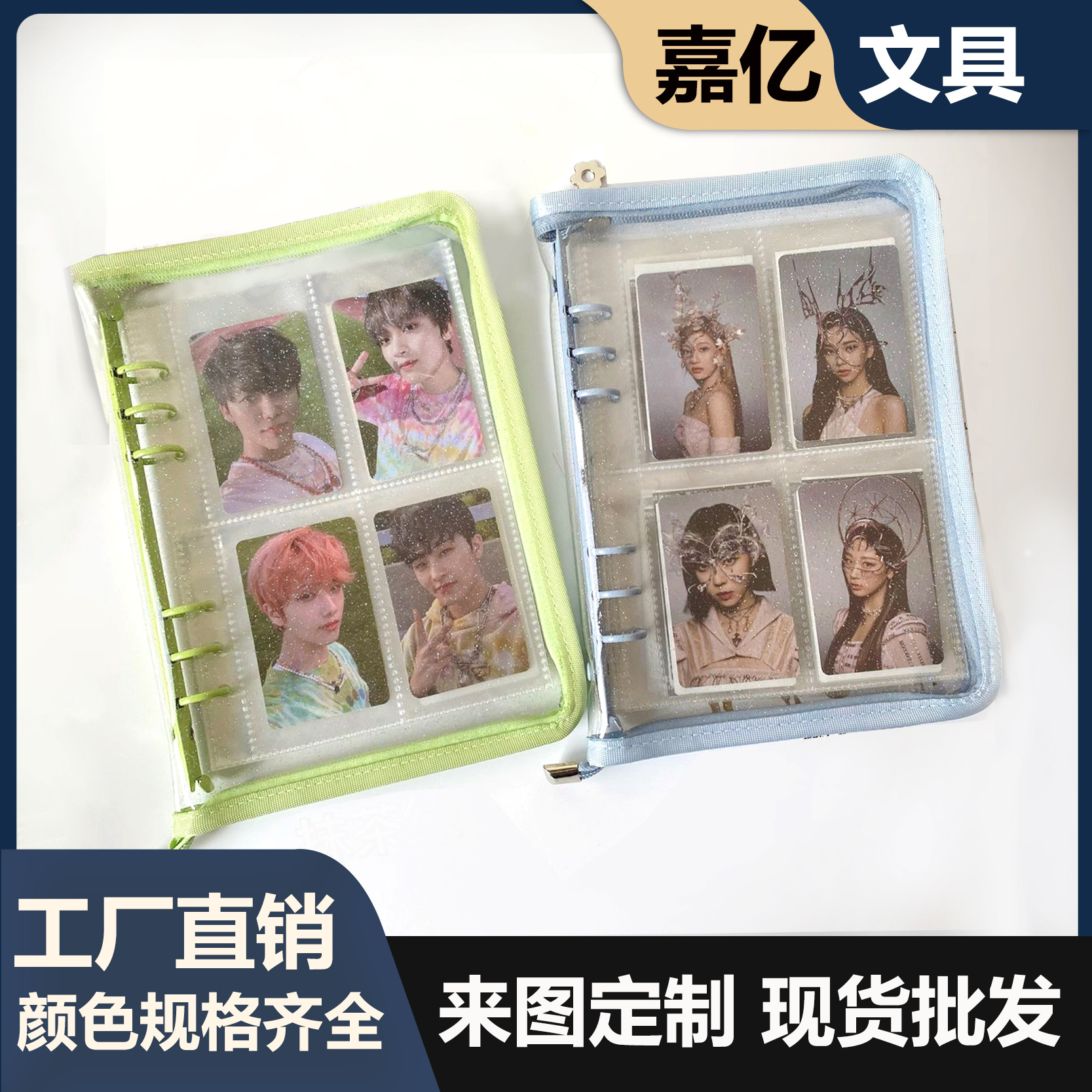 6孔活页本相册本拉链包边透明星星追星手账本外壳小卡册 收纳贴纸