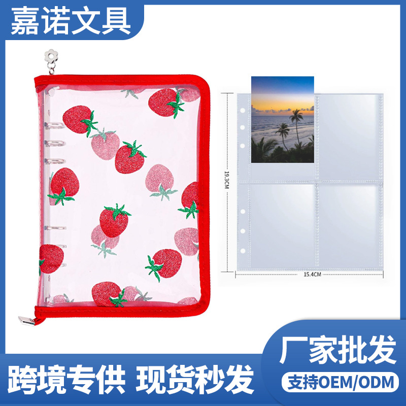 透明拉链包口袋手帐外壳6孔活页手账本蕾丝草莓封面可拆卸A5外壳