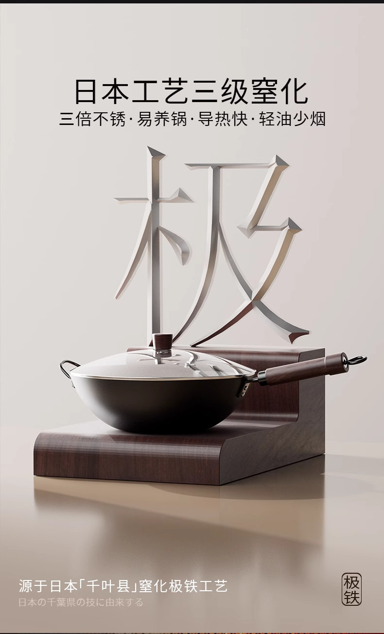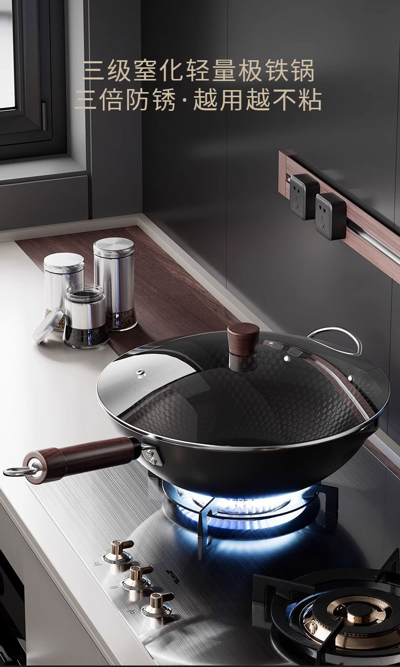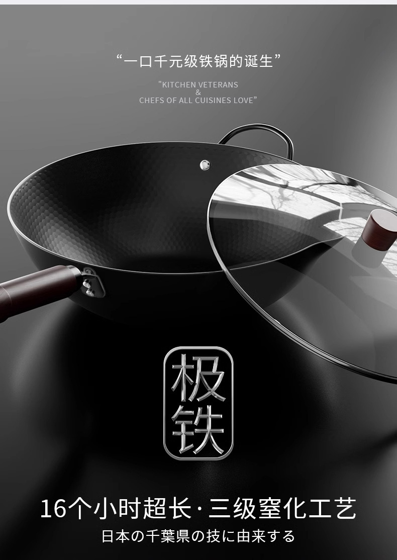 无需开锅极铁锅不粘锅家用炒锅电磁炉燃气灶专用炒菜锅无涂层铁锅