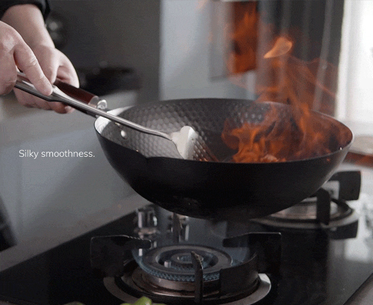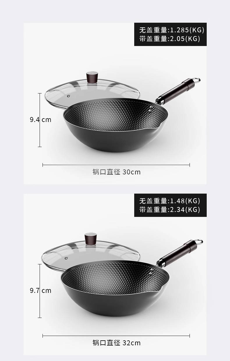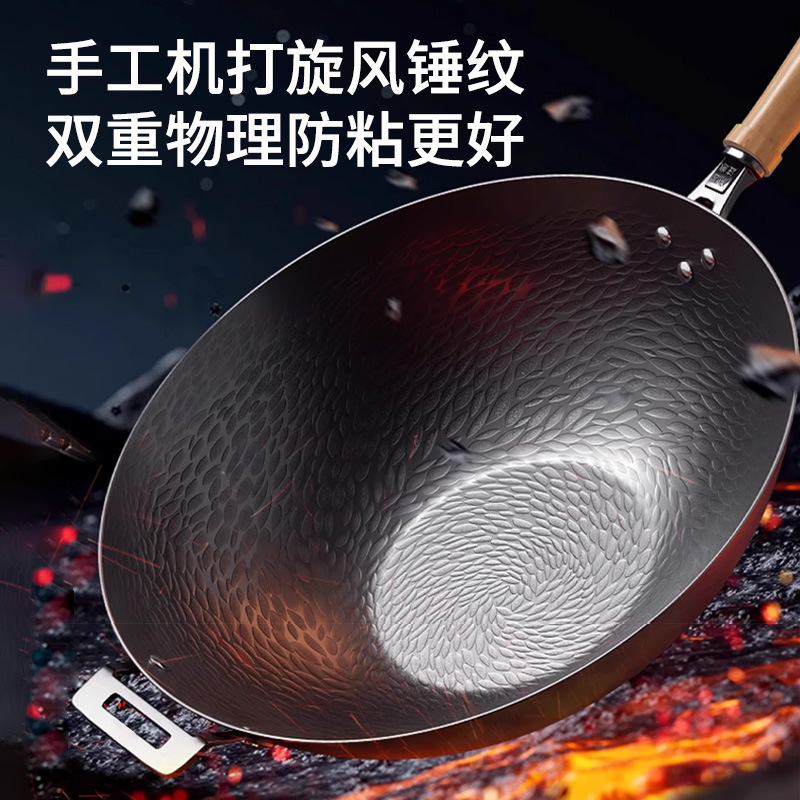 章丘炒锅锤纹平底铁锅手工锻打家用圆底炒菜锅免开锅无涂层不粘锅
