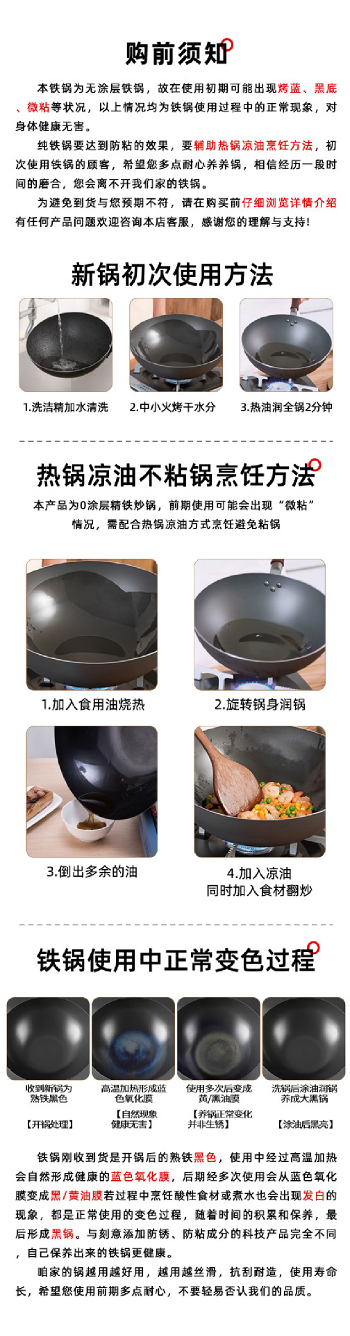 新型旧式極鉄鍋家庭用炒め鍋は鍋にくっつかない防錆鉄鍋0コーティング軽量極鉄鍋卸売り