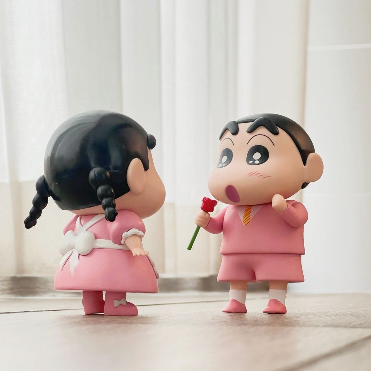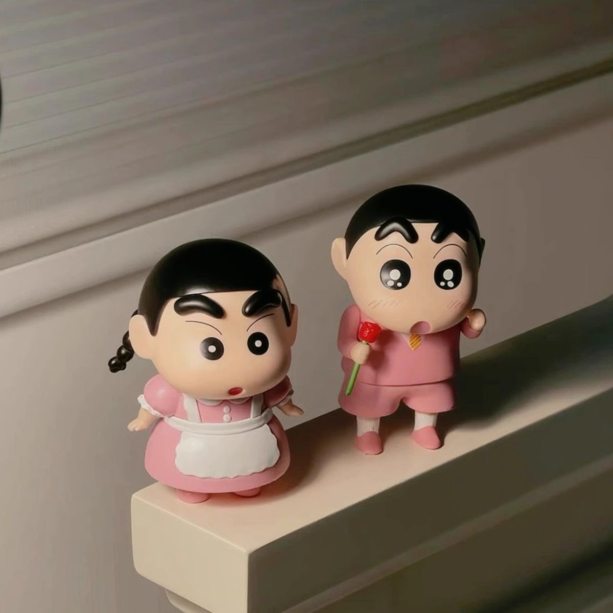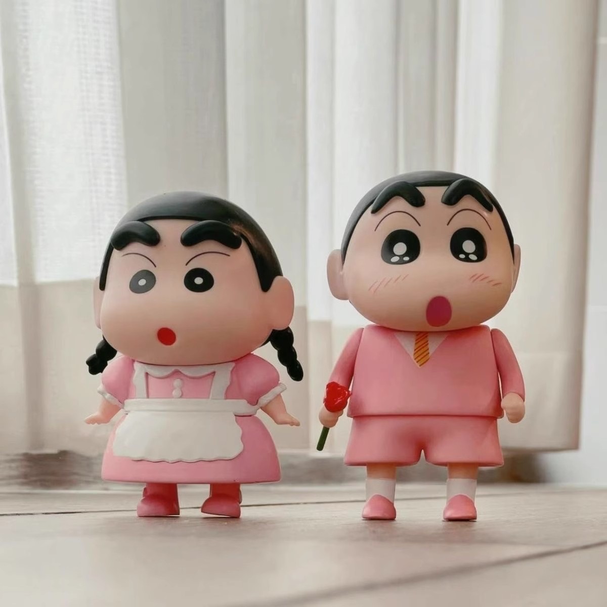 クレヨンしんちゃんフィギュアスーツピンクメイドリトルトレンディなアニメモデル人形デスクトップ車の装飾品誕生日